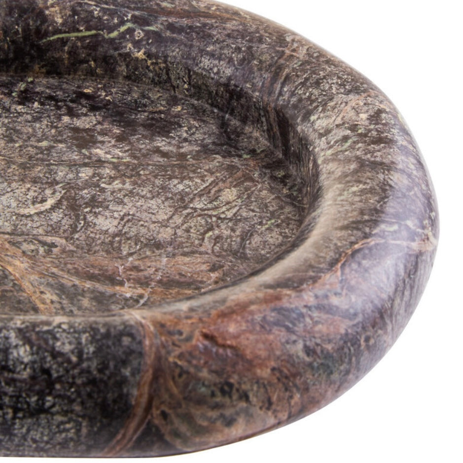Crafted from beautifully veined marble, each piece features unique natural patterns and rich earthy tones. Its smooth, shallow form with gently curved edges makes it perfect for holding keys, jewellery, or small accessories, while adding a refined decorative touch to consoles, bedside tables, or desks.