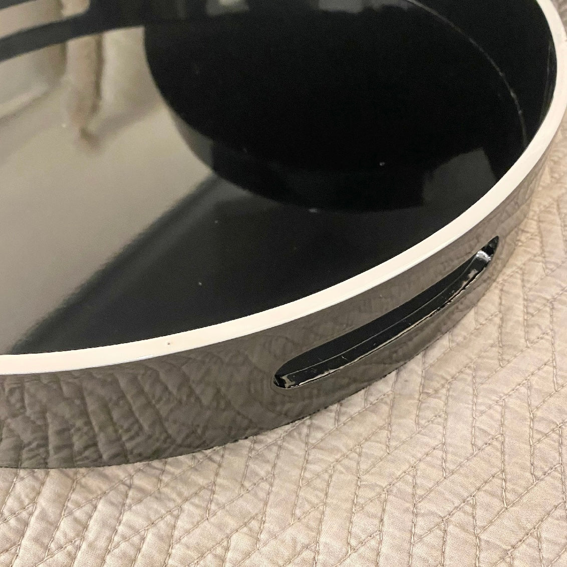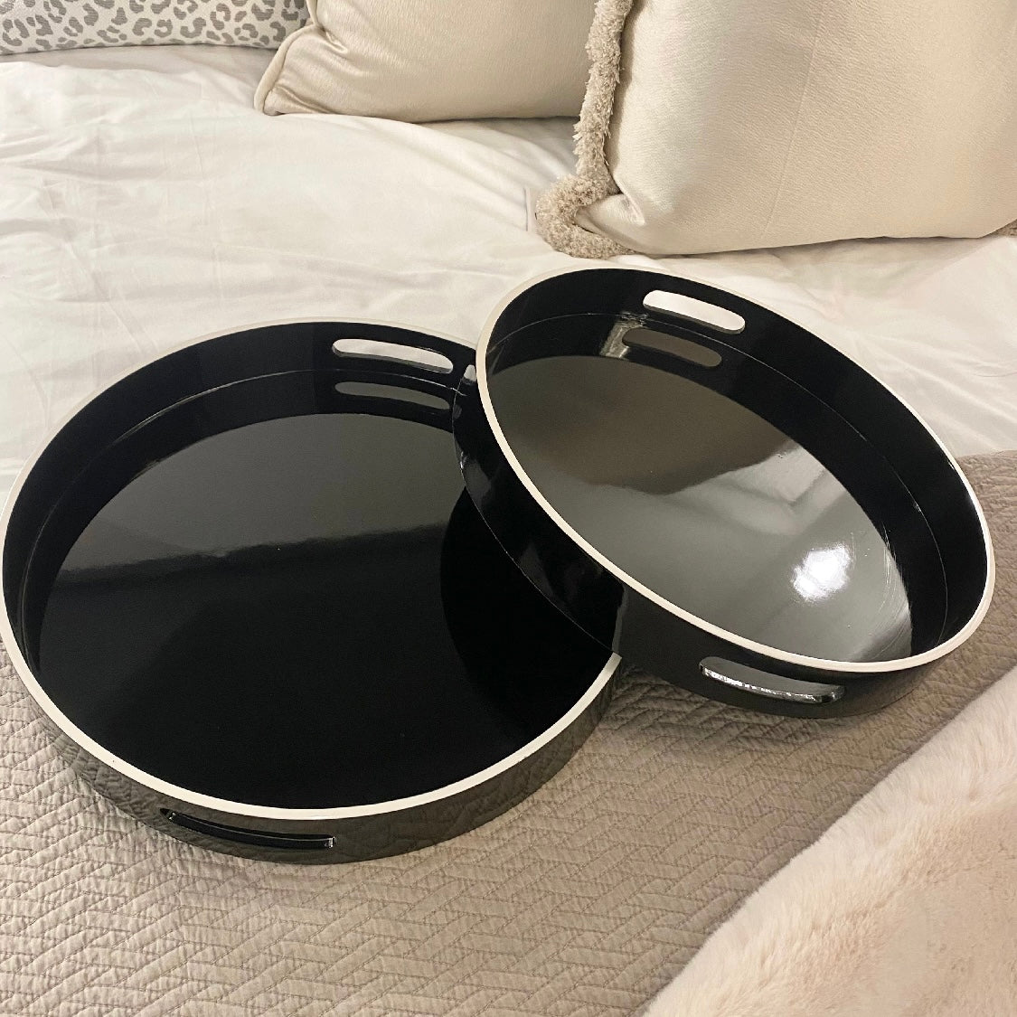 The Set of 2 Black Trays with White Rim is the perfect blend of style and function, bringing a chic contemporary touch to your home.
