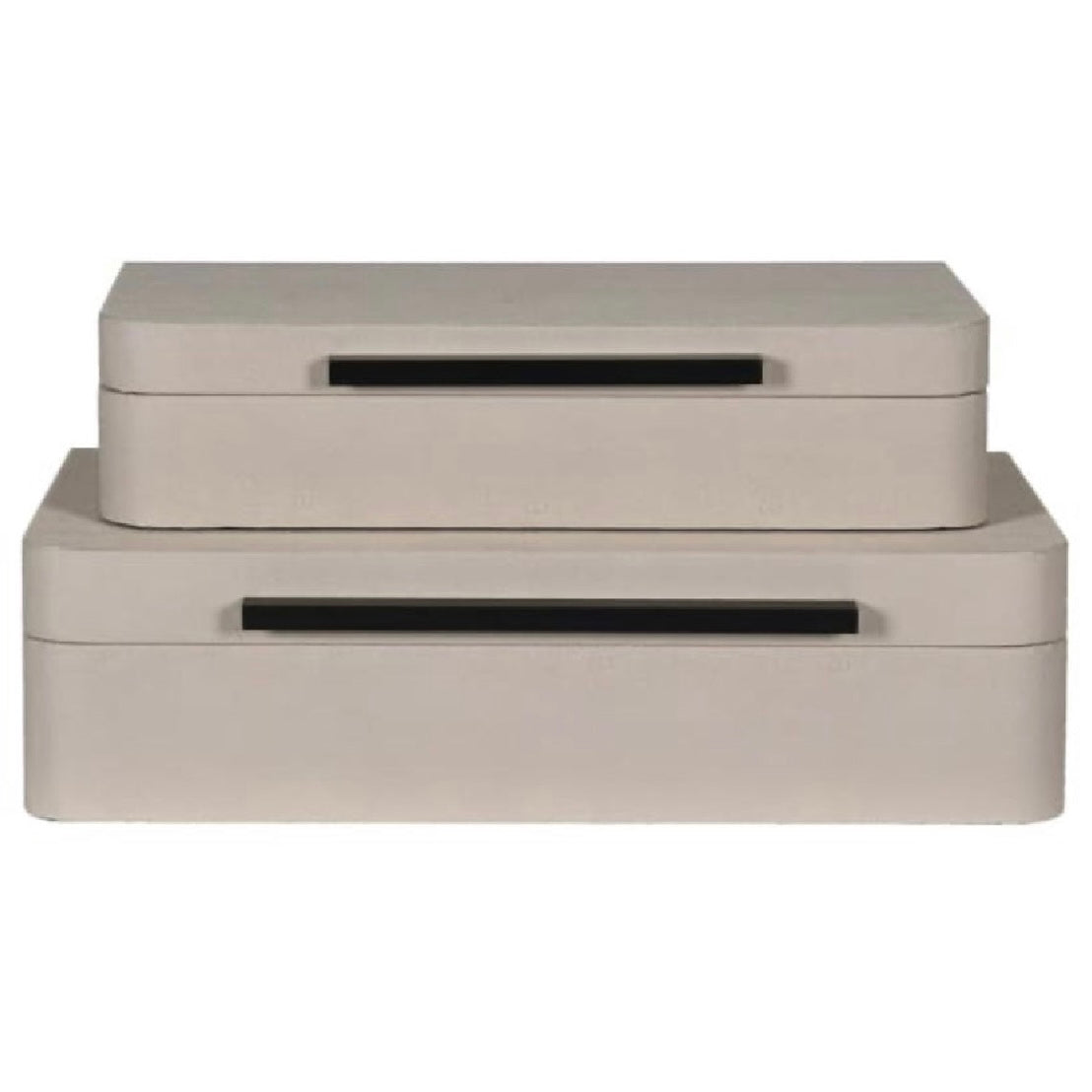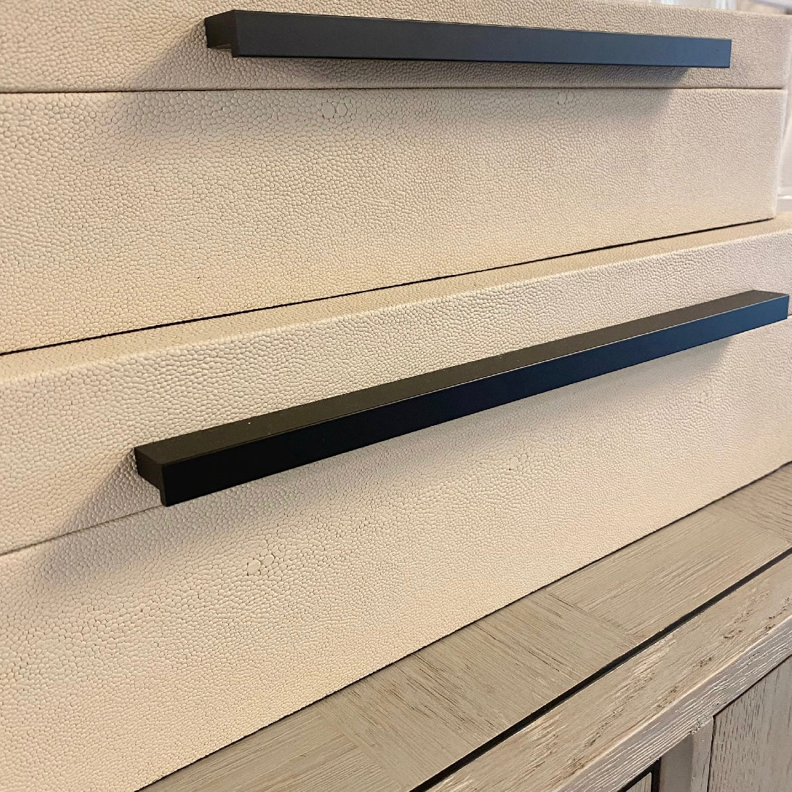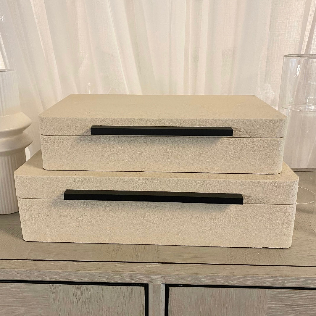 Whether placed on a console table, wardrobe shelf, desk, or bedside cabinet, the Set of 2 Cream Boxes with Black Handles is a practical yet elegant addition to any room.