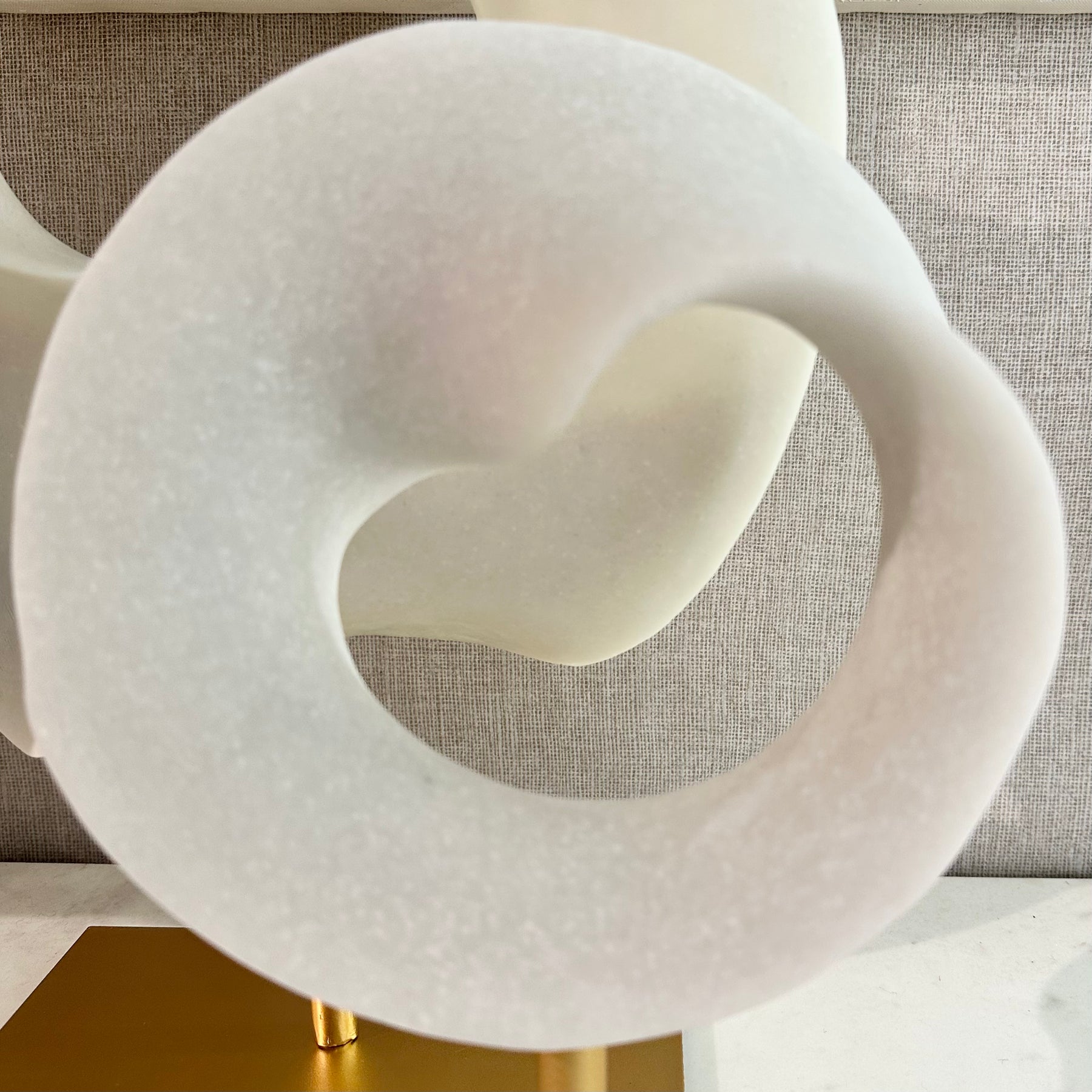 Modern and artistic, this abstract resin sculpture features a smooth, curved silhouette in a soft stone-like finish, mounted on a sleek metallic base. Ideal for adding a touch of contemporary elegance to shelves, consoles, or coffee tables.