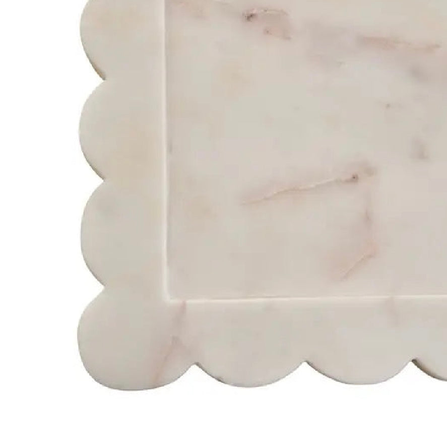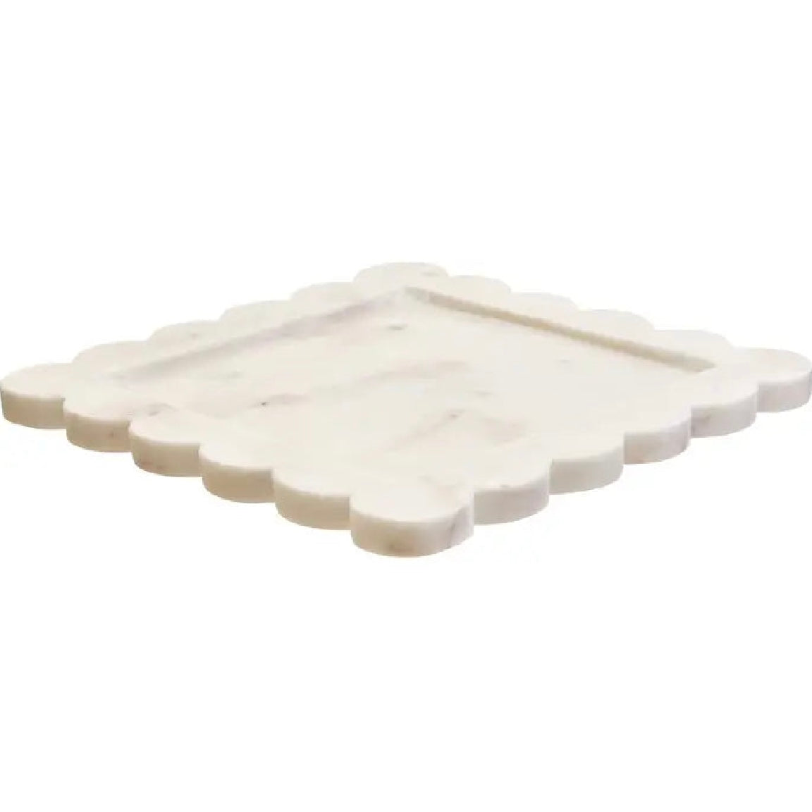 The White Marble Square Large Tray with Scallop Edges is the perfect combination of beauty and function, bringing effortless sophistication to any home.