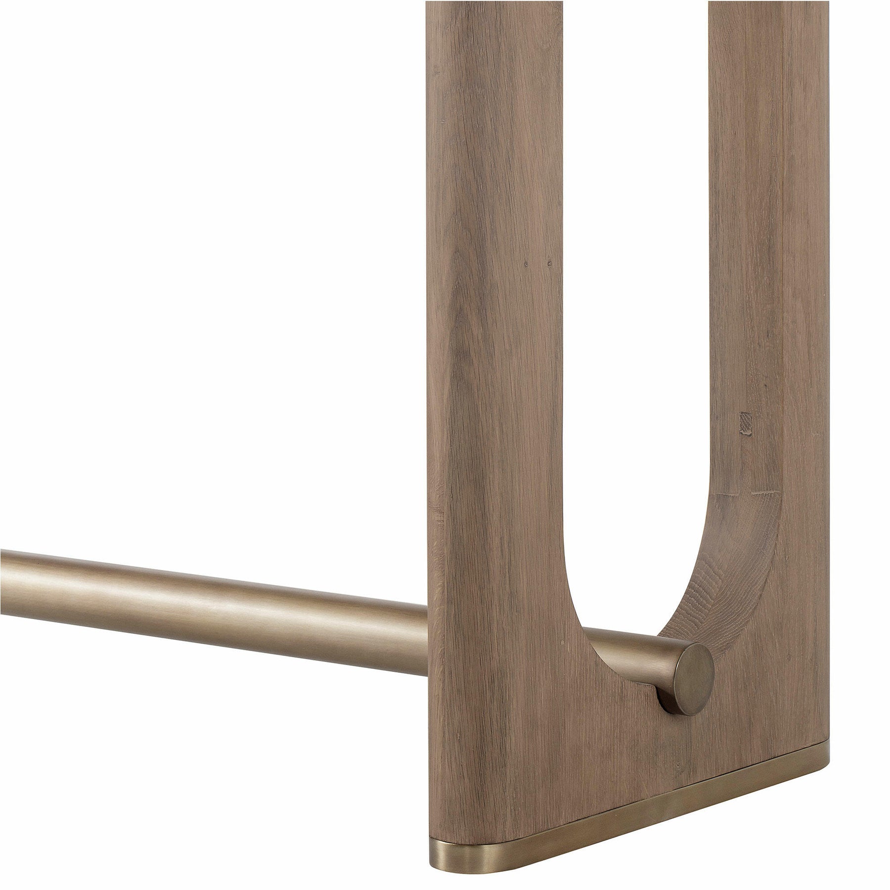 This fresh and simple design has been crafted in natural light oak with okoume eged veneers and satin brass accents. The humble silhouette can be styled liberally for a maximalist look or with minimal accessories for more contemporary feeling interiors