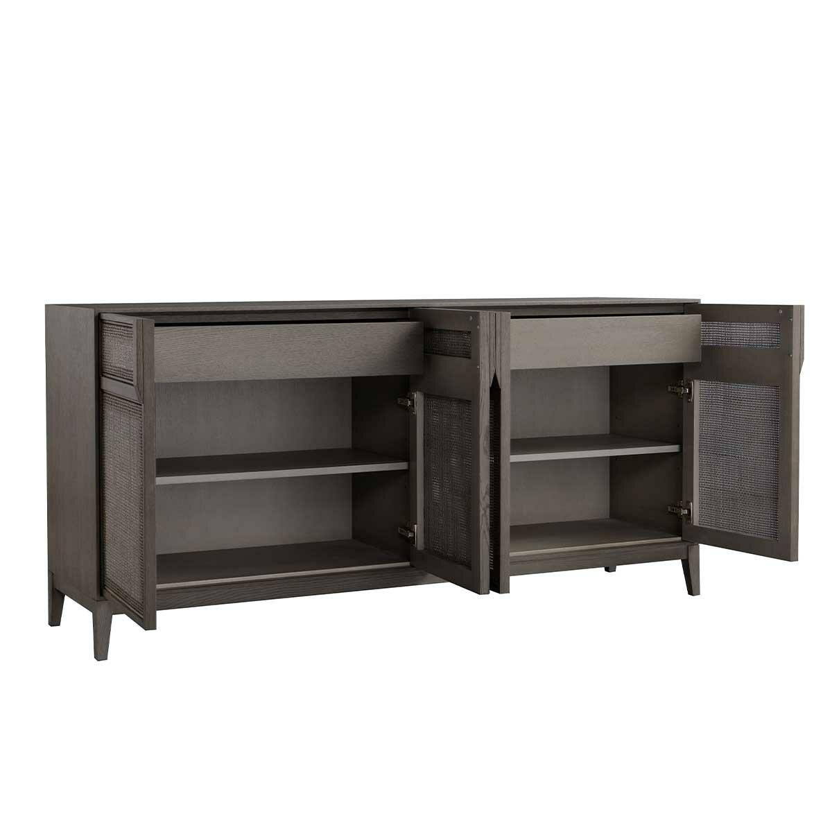 Elegantly crafted with a smoked oak finish this sleek sideboard evokes a relaxed and modern look. The frame is lightly brushed to reveal the natural grain of the wood which fits perfectly with the soft-close rattan doors. Inside you will find two drawers and adjustable shelving. Due to the weight of this product, delivery would be to ground floor only.