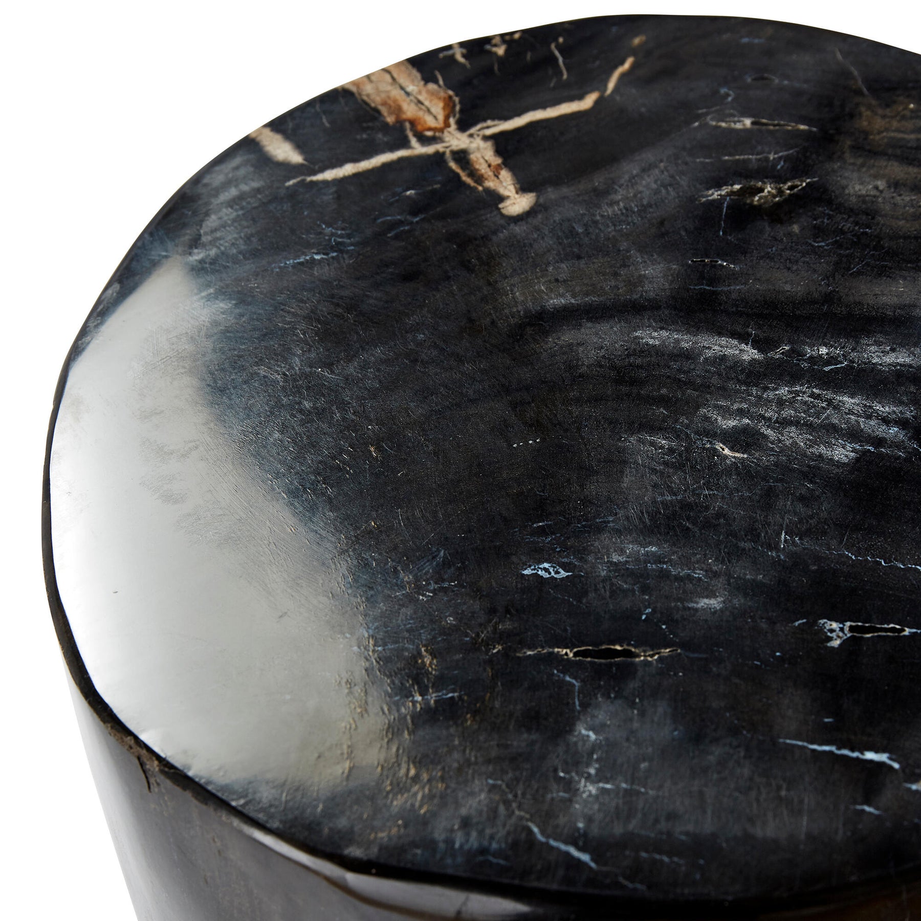 totally unique, hand-polished petrified wood stool or side table. Petrified wood is the result of permineralisation which turns wood to stone. The process takes place when wood becomes buried under sediment or volcanic ash and is preserved due to lack of oxygen.