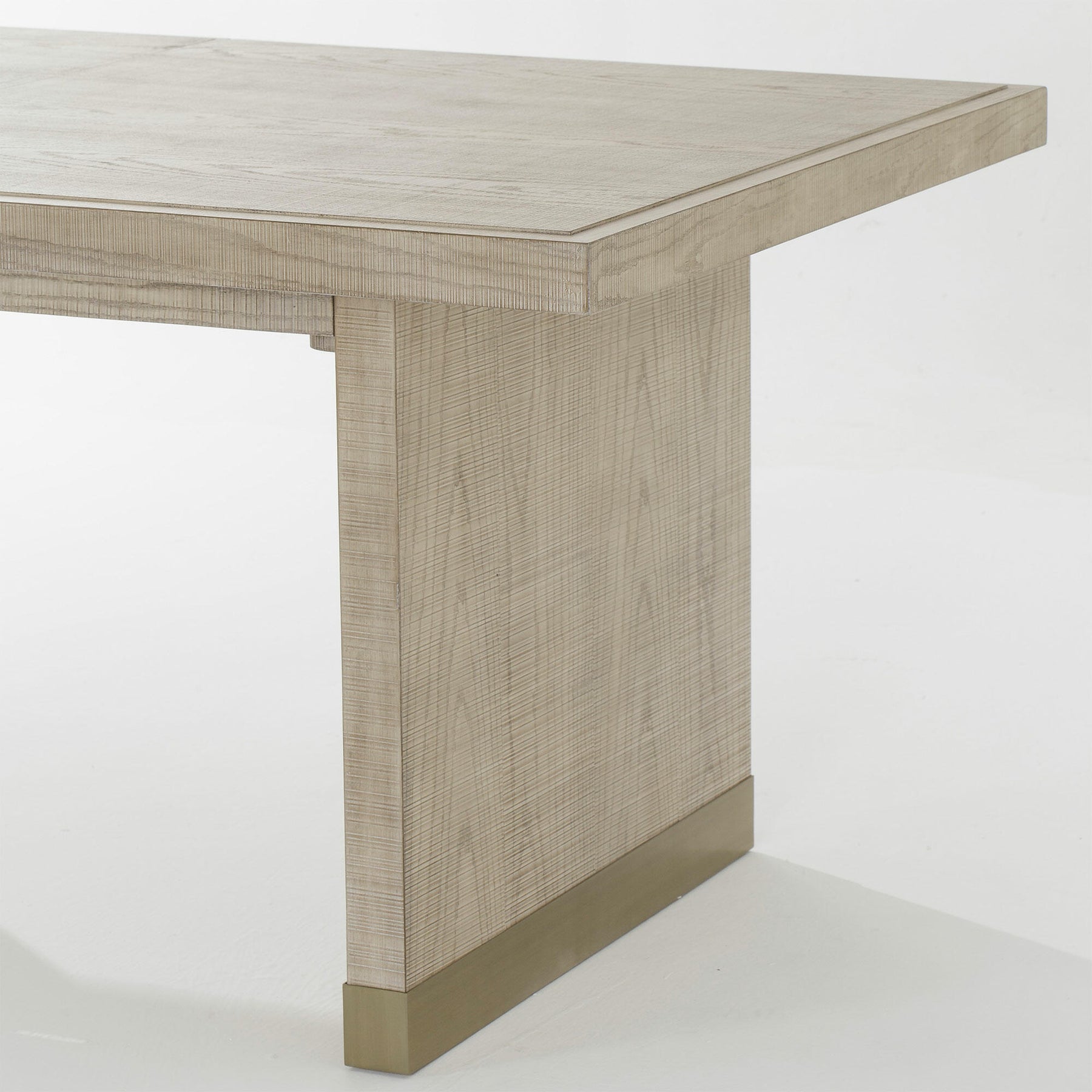 This versatile extending dining table exudes informal elegance and a relaxed aesthetic. Raffles boasts an interesting mix of textures with rough sawn, natural ash veneer and brushed brass accents, suited to be paired with a range of dining chair styles. This dining table comfortably seats six people (183cm width), or up to ten (243cm width) when extended and the extension can be stored within the table.