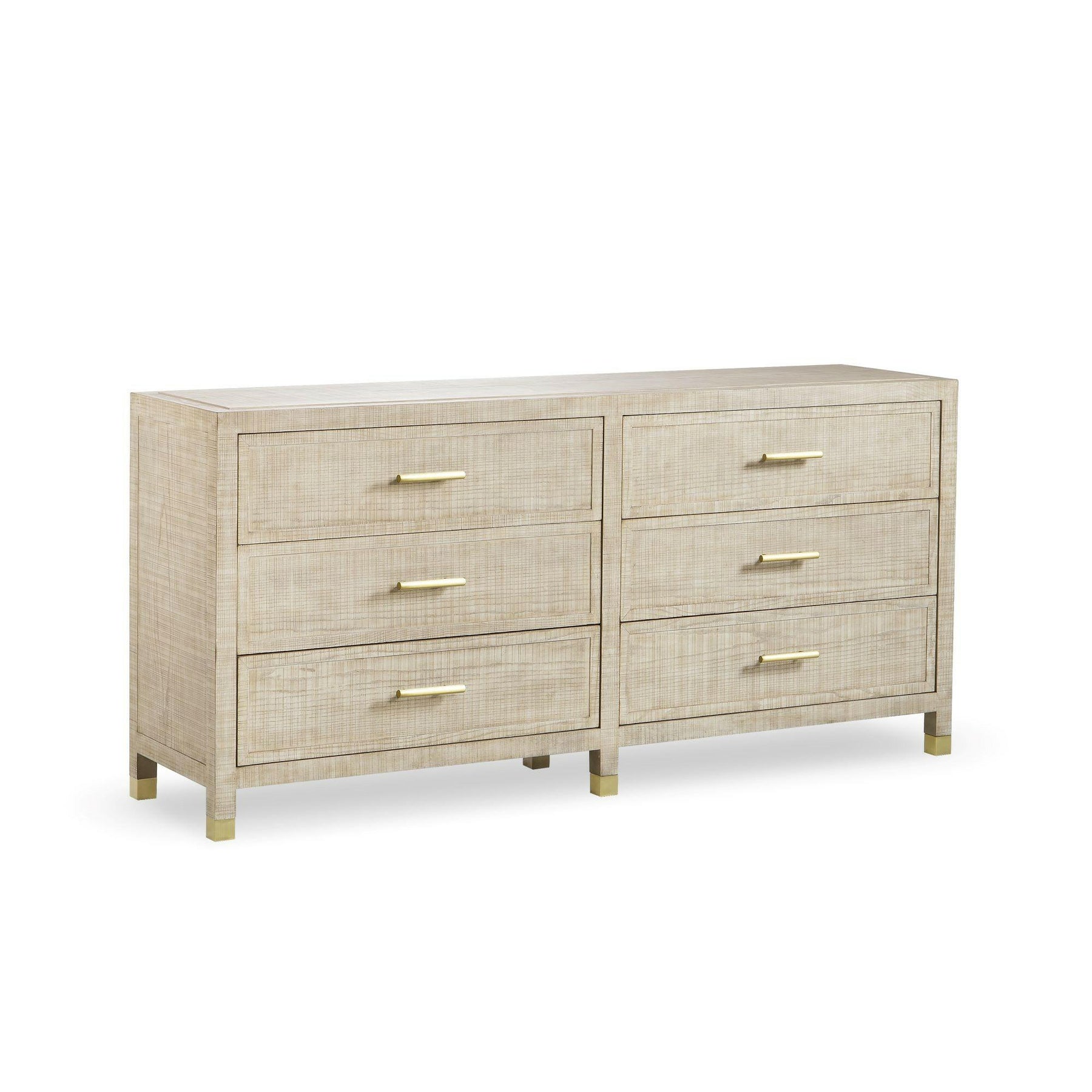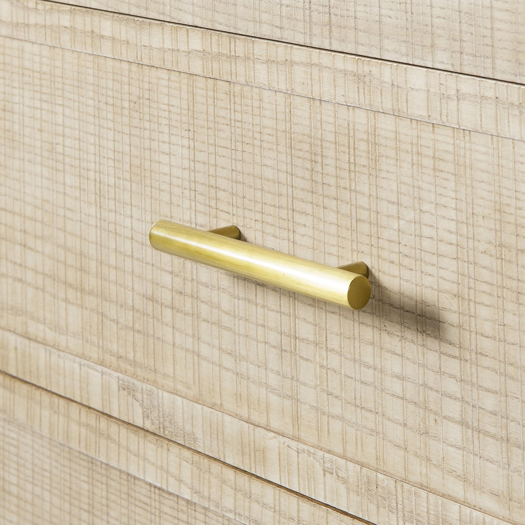 Create an air of sophistication in your bedroom with the Raffles chest of drawers, crafted from a textured multi-directional mix of ash solids and veneers that evoke the impression of a rough woven linen. Complete with 6 drawers finished with elegant brass handles for ample storage.