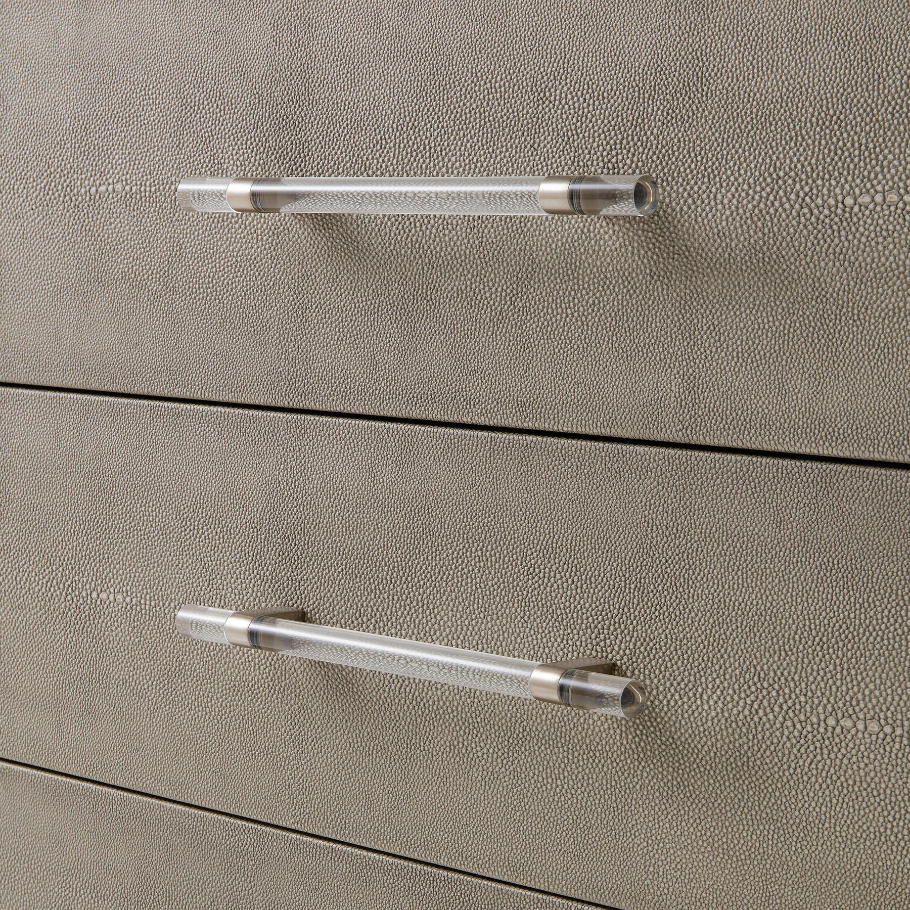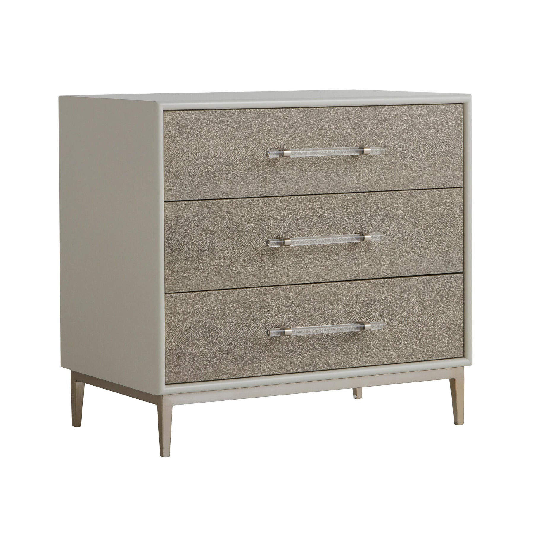 Alice boasts three faux shagreen drawers complimented by solid Perspex handles, encased in a white painted frame and perched elegantly on antique brass finish legs. This sophisticated nightstand offers ample storage space, whilst the neutral colours and simple silhouette give it a timeless and versatile feel to suit a range of interiors.