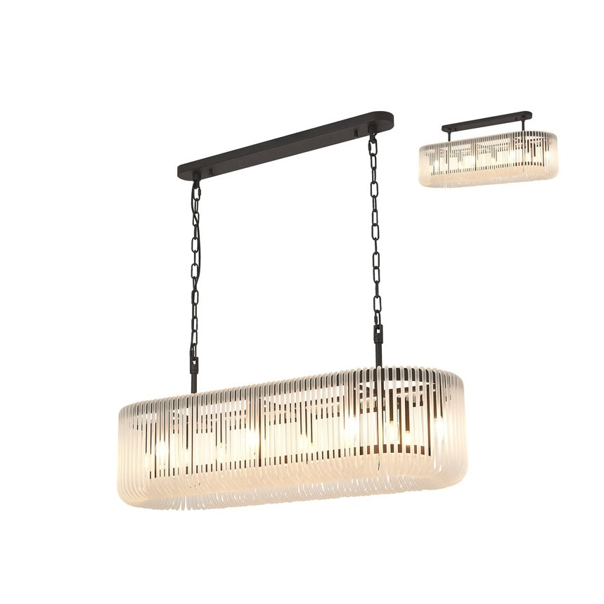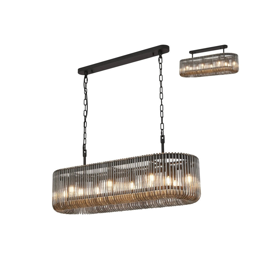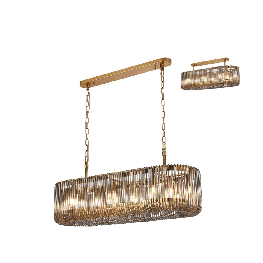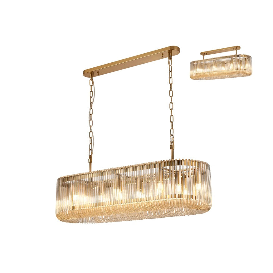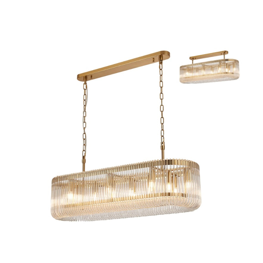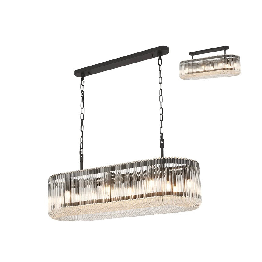 The Julia 100cm Oval Pendant Light is designed to make a statement over dining tables and kitchen islands. Its elongated oval form is wrapped in vertically ribbed glass, diffusing the light into a soft, atmospheric glow while adding beautiful texture and depth.