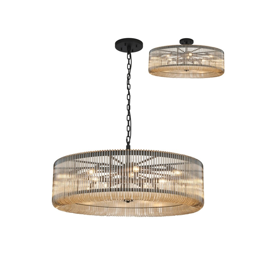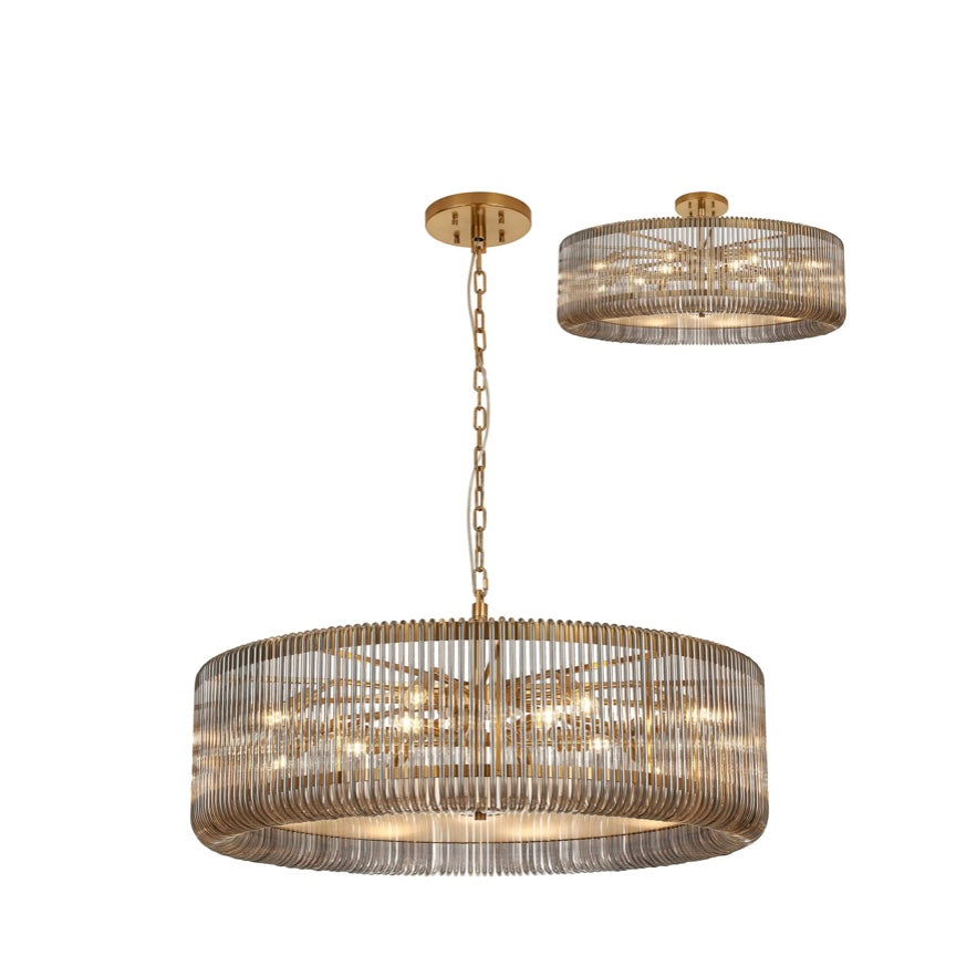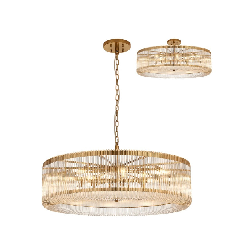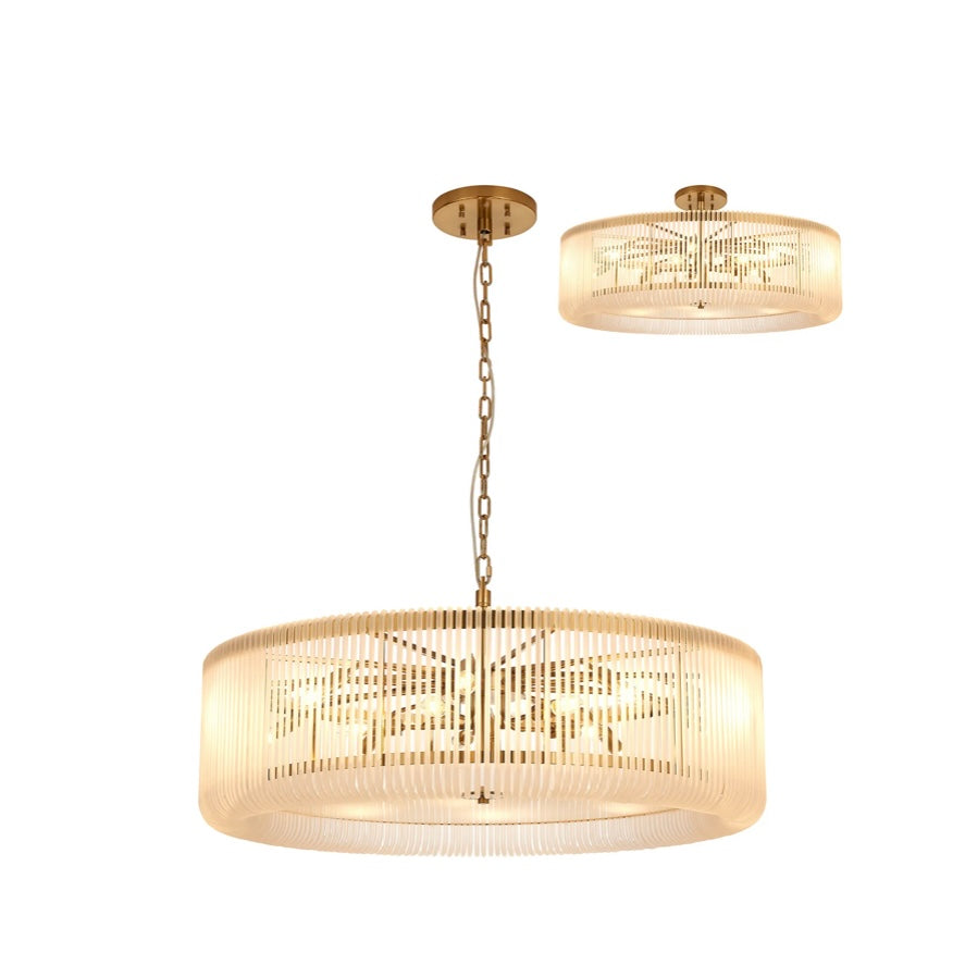 The Julia 100cm Pendant Light pairs classic glamour with modern refinement. Its drum-shaped shade is wrapped in vertically ribbed glass that diffuses light beautifully, creating a warm, atmospheric glow while adding texture and depth.