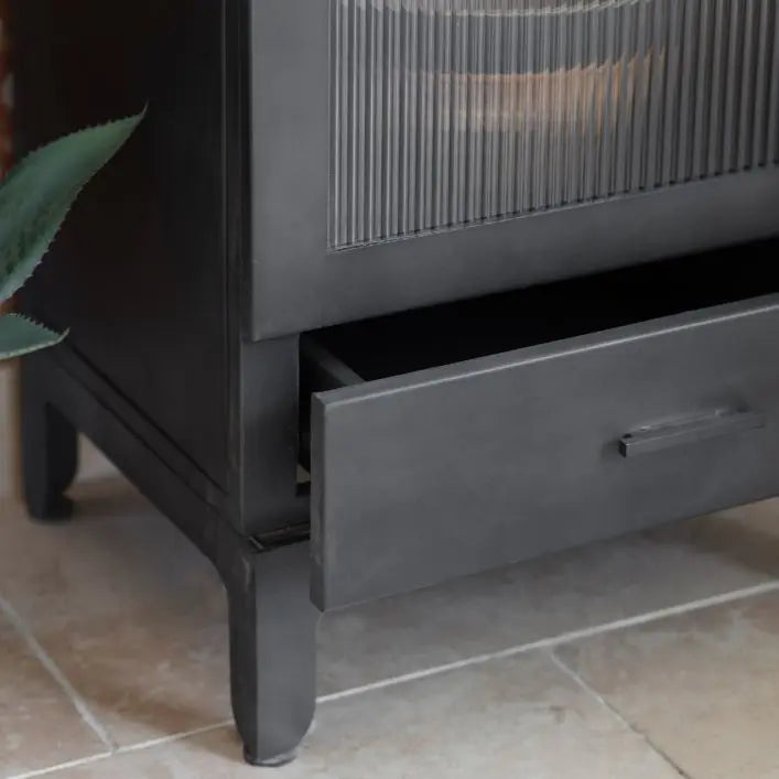 For a retro feel, this 1 door display unit offers an updated take on a classic 50's look. The matt grey finish of the steel pairs beautifully with the ridged tempered glass creating a stunning piece which would look at home in a wide variety of interiors, including orangeries and conservatories to add an unusual twist to their look. There is also a 2 door version.