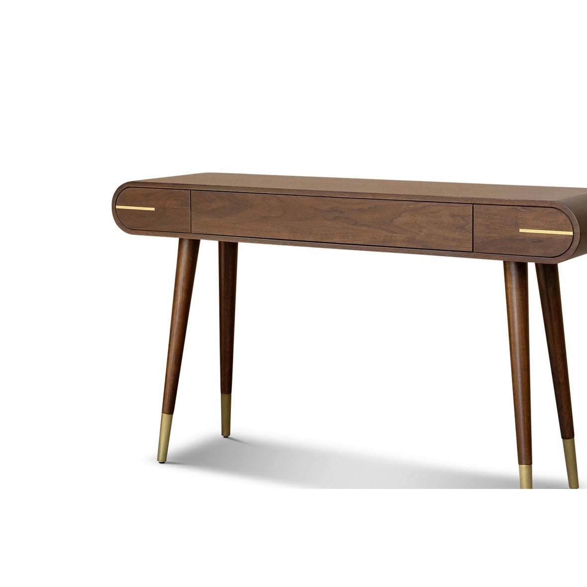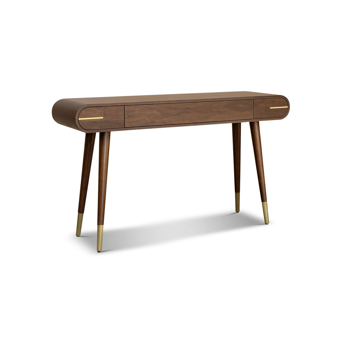 The Malibu Console Table comes in a natural walnut veneer with brass features. With its curved and uniqe design, the Malibu console can help achieve the perfect finish in a any home or interior design project.