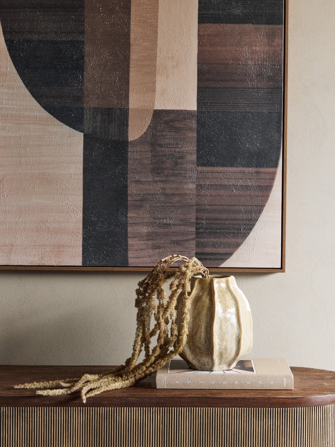 Perfect as a standalone accent or styled with tall stems and dried foliage, it brings a grounding, sculptural presence to consoles, sideboards, or dining tables.