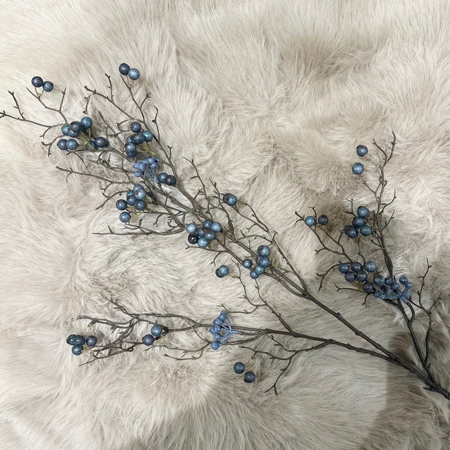 Bring a touch of natural texture to your arrangements with the Blue Berries Spray. Featuring delicate clusters of deep blue berries and slender branching stems, this piece adds subtle colour and depth to winter and autumnal styling.