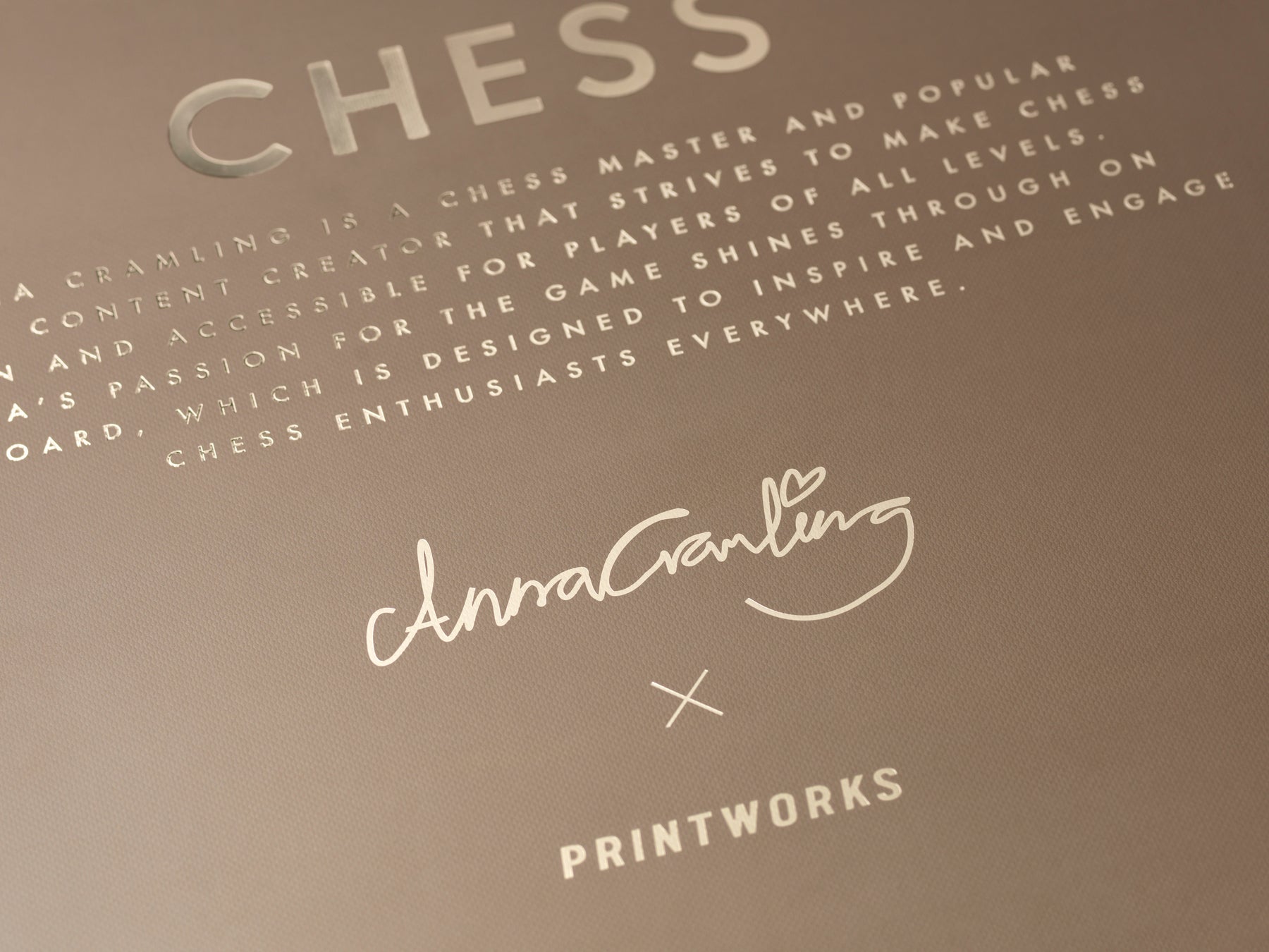 Printworks is proud to present a limited edition chess set designed together with renowned chess player and content creator Anna Cramling. Crafted from beautiful Schima superba wood, this chessboard features subtle numbering along the edges to support new players in learning and improving their game.