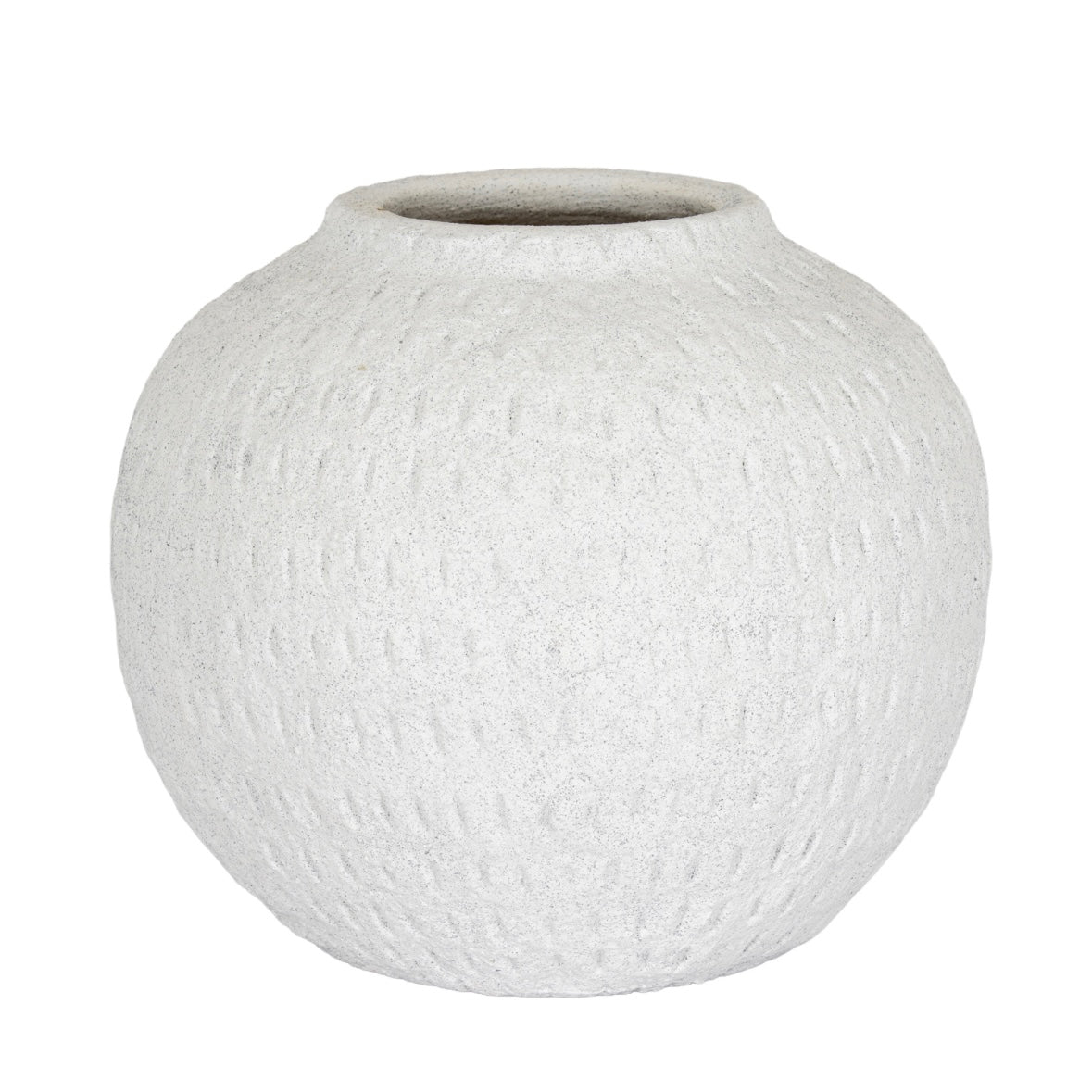Designed with generous proportions, this round ceramic vase is perfect for styling on consoles, sideboards or large coffee tables. Display with dried stems for added height and texture, or allow its tactile surface and rounded form to stand alone as a decorative statement.