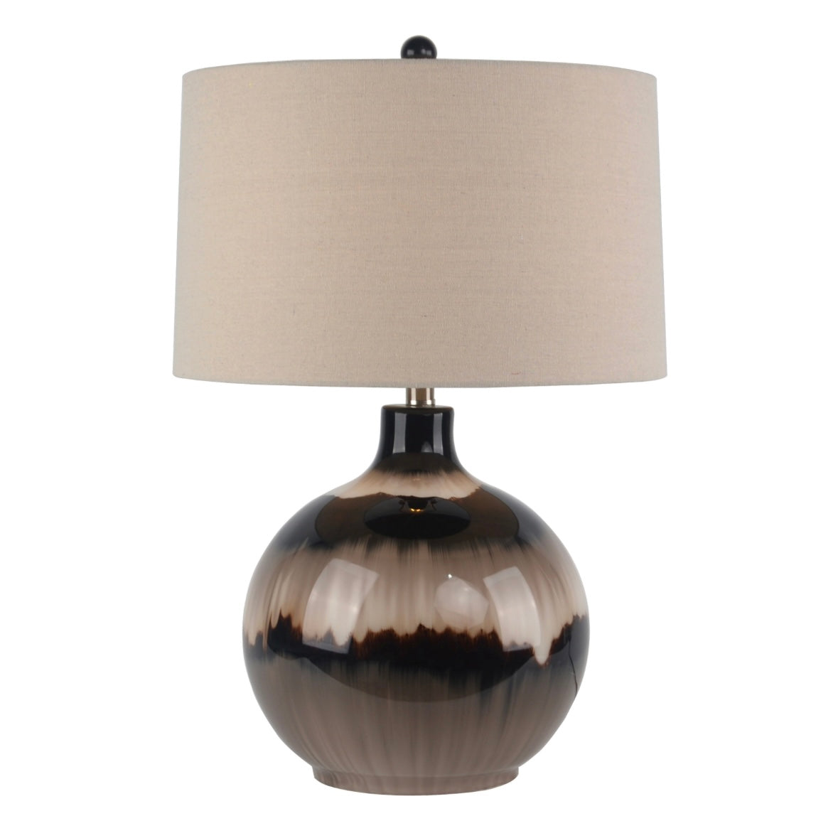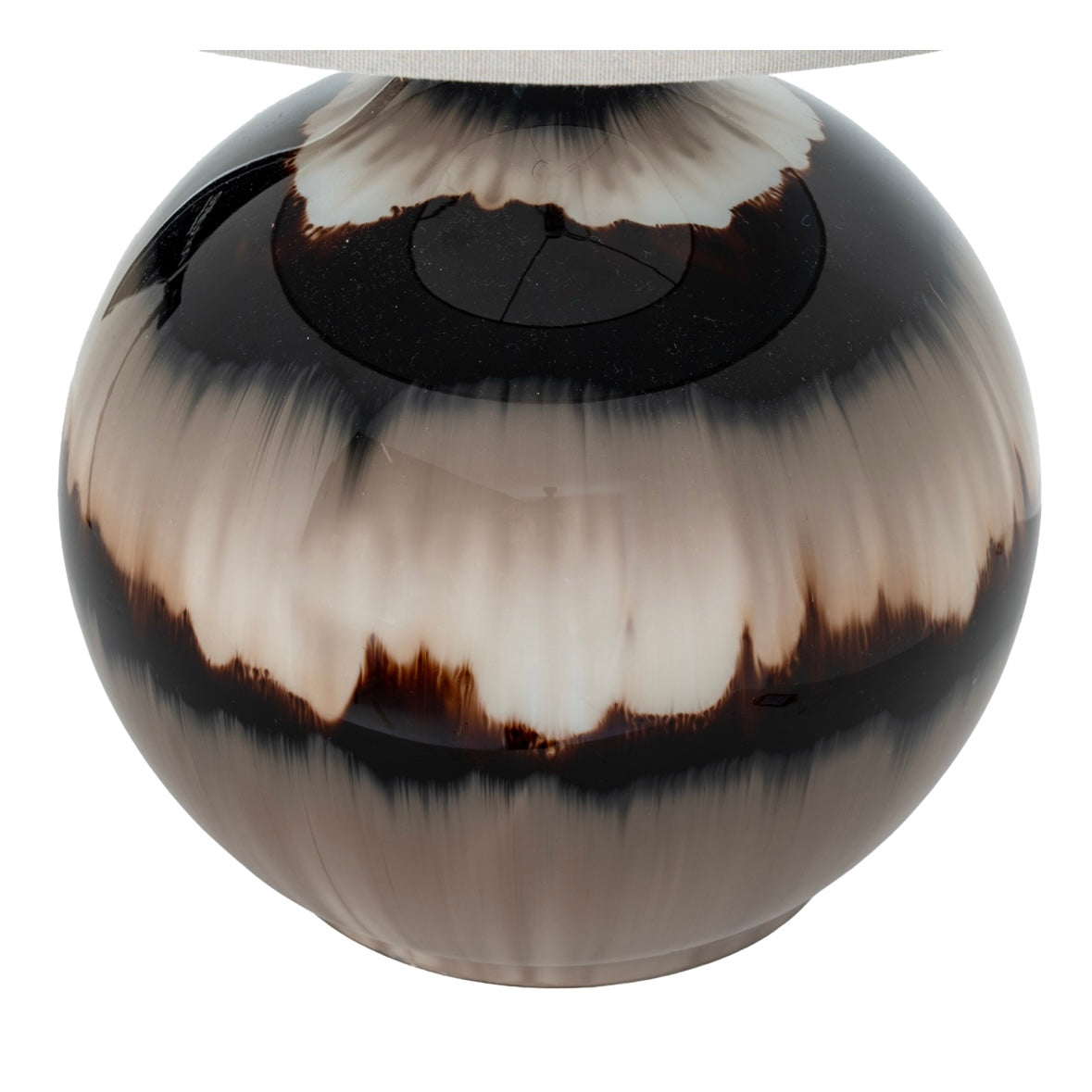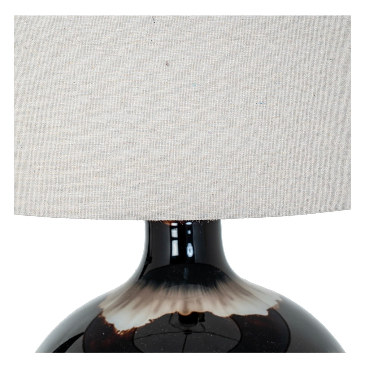The Sepia Shadows Table Lamp with Linen Shade brings warmth and artistic character to your interior. Featuring a rounded ceramic base with a striking sepia-toned glaze effect, this decorative table lamp blends rich brown, cream and deep shadow hues for a truly eye-catching finish.