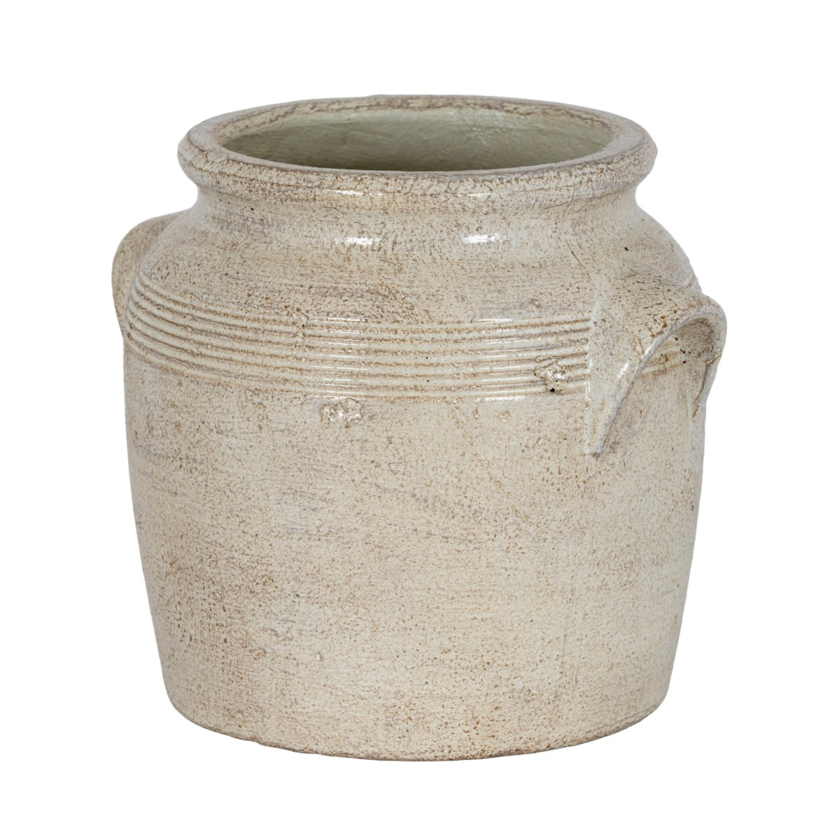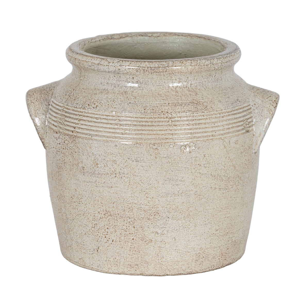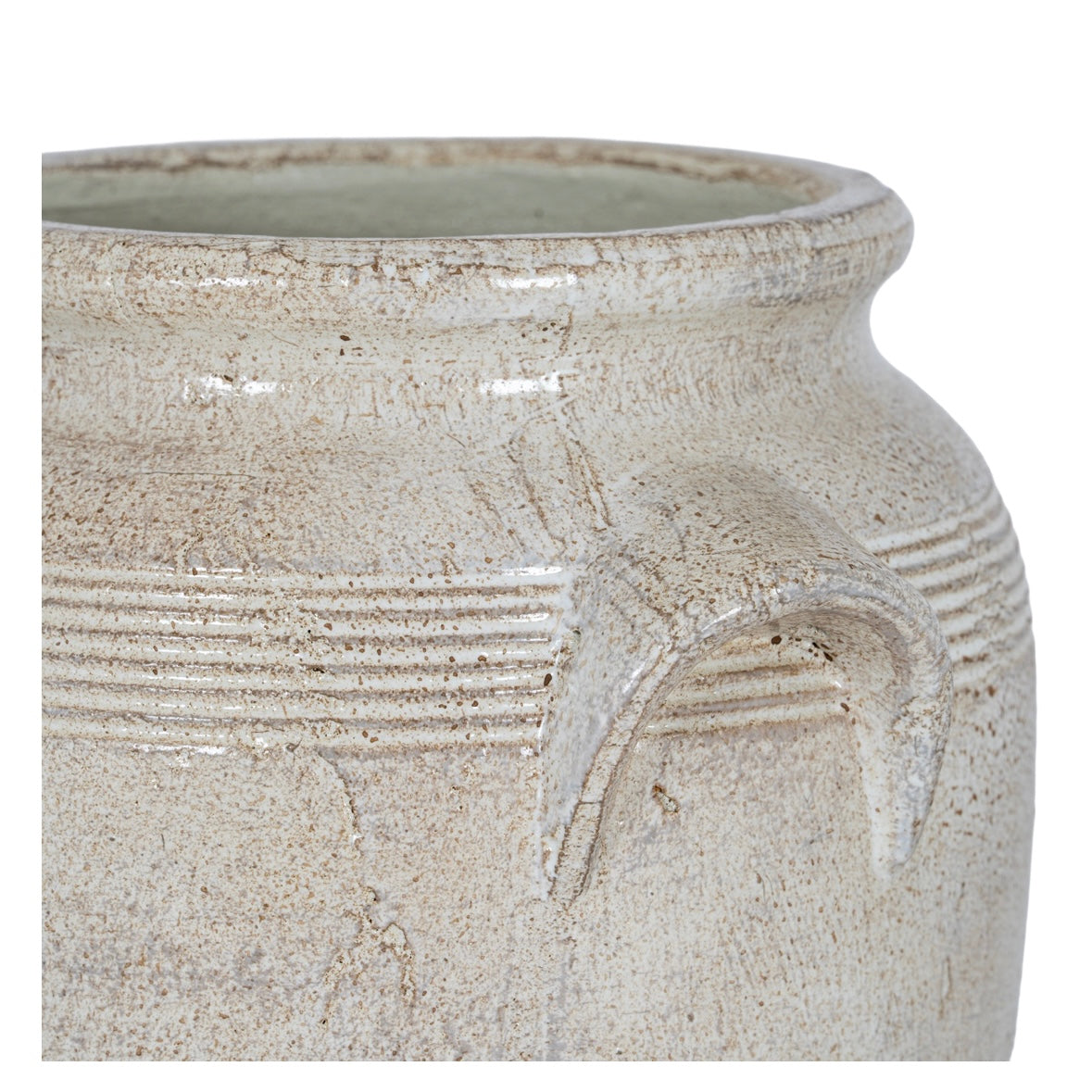 Featuring subtle ribbed detailing and classic side handles, it creates an authentic, Mediterranean-inspired look. Its neutral tone makes it easy to style on consoles, kitchen islands or as a statement floor piece.