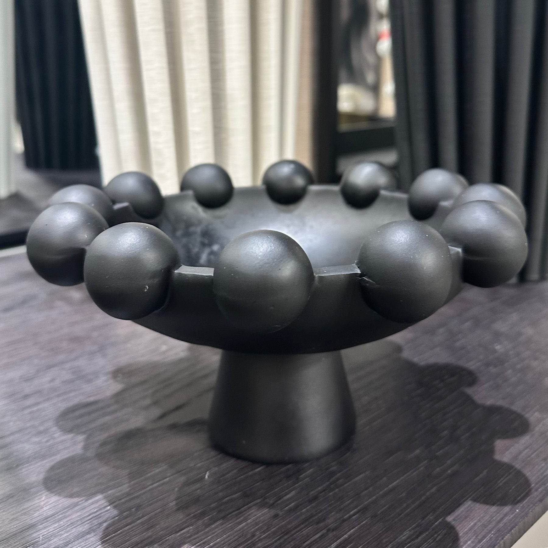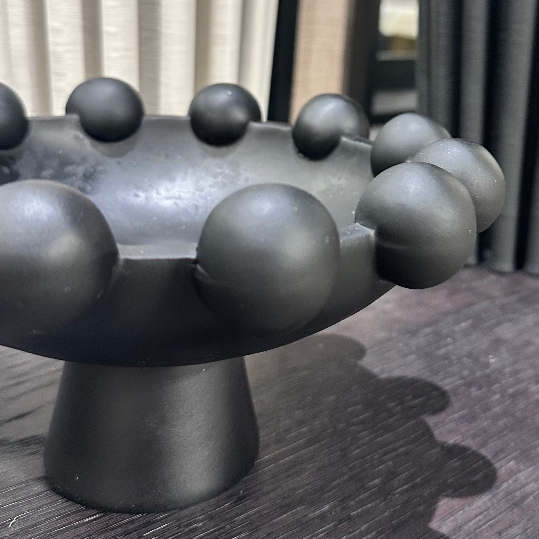 Contemporary and sculptural, the Black Footed Bubble Vase makes a striking statement in any interior. Featuring a glossy black finish and rounded bubble detailing, it brings bold texture and form to your styling.