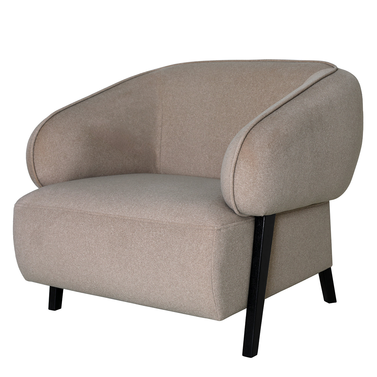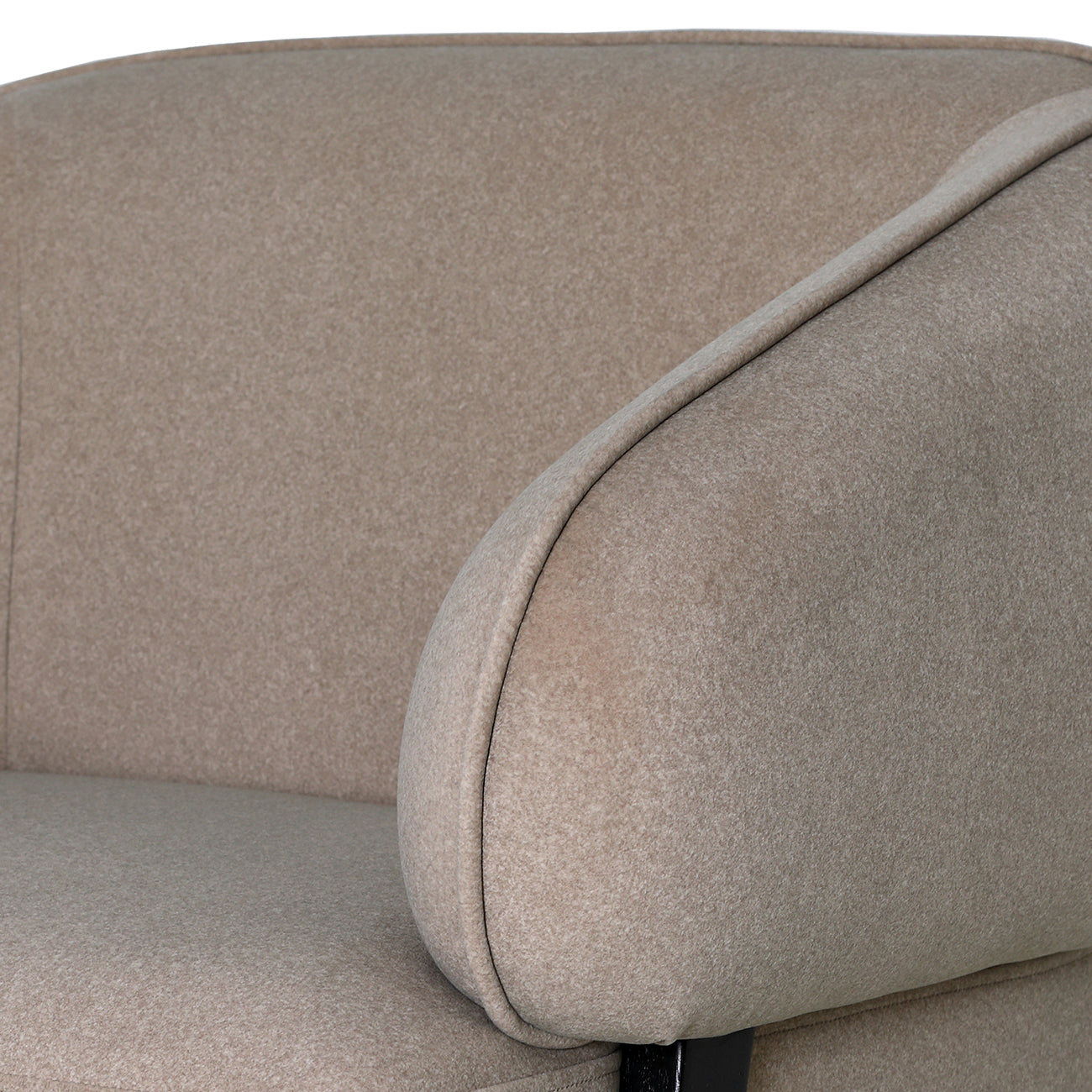 With its gently rounded silhouette and generous cushioning, the Dawlish Occasional Chair brings a soft, sculptural presence to contemporary interiors. Upholstered in warm beige soft brushed velvet, it reflects today’s move toward taupe inspired neutrals that create calm within a space. The black wooden legs introduce a grounded contrast, giving the pebbly taupe a distinctly on-trend feel. The elevated frame and deep seat offer both lightness and comfort, ideal for living spaces, bedrooms or quiet reading corners.