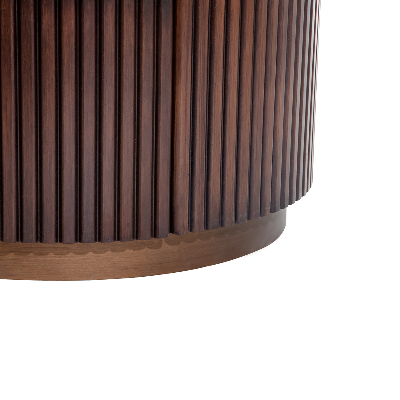 The Whitwell Three Drawer Chest offers a confident blend of form, function and refined materiality. Its softly curved structure is crafted from solid rubberwood, fluted and finished in a deep walnut tone. A pebble grey marble top crowns the piece, with each surface naturally varied in tone and veining. Three spacious drawers feature antique brass handles and glide open with ease, while the matching plinth base lends subtle shine and definition. A considered storage solution with sculptural appeal.