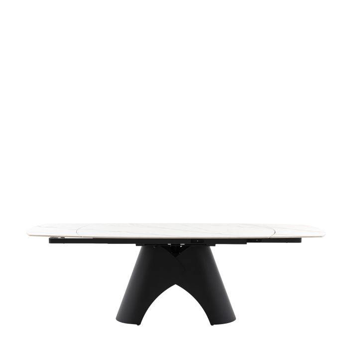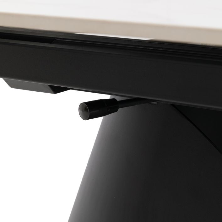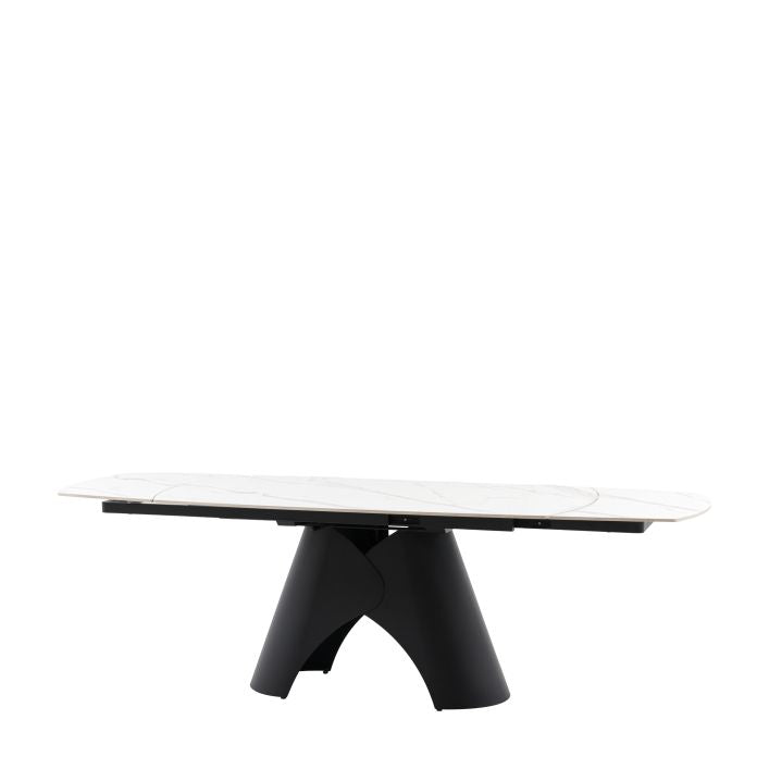 The Bresso Extending Dining Table combines bold, sculptural design with everyday practicality. Finished with a striking black base and a sleek tabletop, its architectural silhouette makes a strong statement in contemporary dining spaces. The clever extending mechanism allows the table to expand effortlessly, providing additional seating when entertaining while maintaining a clean, refined look when closed. Perfect for modern homes that value both style and flexibility, the Bresso Dining Table is designed to adapt beautifully from daily dining to special occasions.
