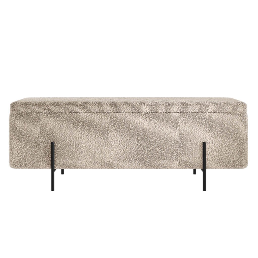 Ideal for those searching for a bouclé storage ottoman, modern upholstered storage bench, or neutral ottoman with black legs, the Kola Buff combines on-trend texture with everyday functionality.
