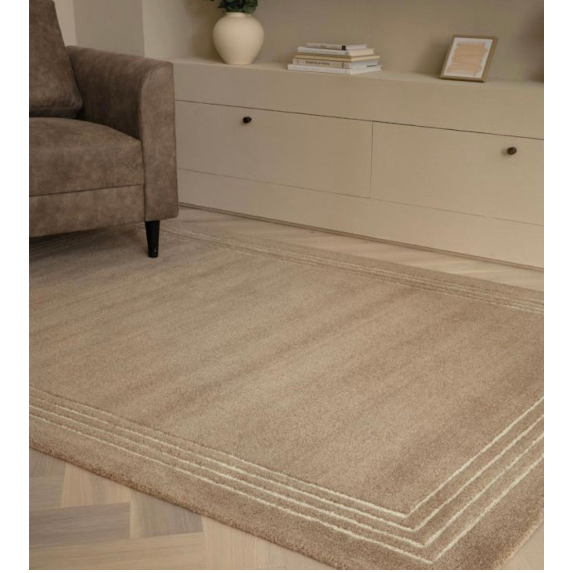 Warm, grounding and effortlessly elegant, the Orlo Coco Rug brings rich natural tones into contemporary interiors. Its softly layered linear texture creates subtle depth across the surface, while the refined border detail frames the design with a tailored finish.