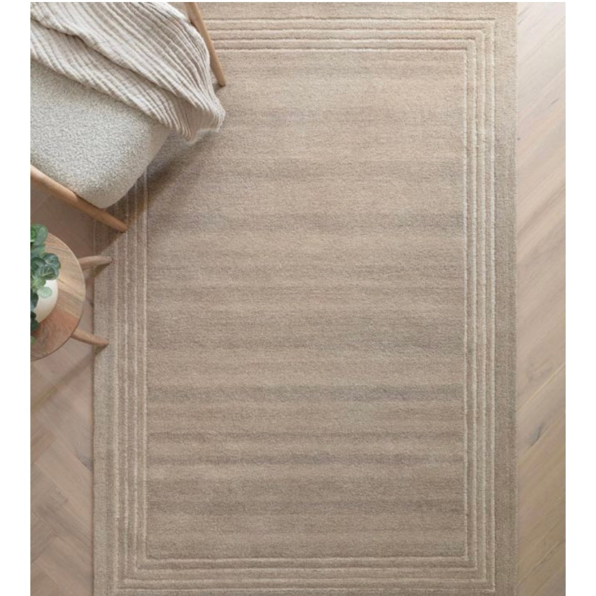 Soft, tonal and effortlessly versatile, the Orlo Sand Rug brings warmth and quiet texture to any space. Its layered, linear weave creates subtle movement across the surface, while the gently defined border adds structure without feeling formal.