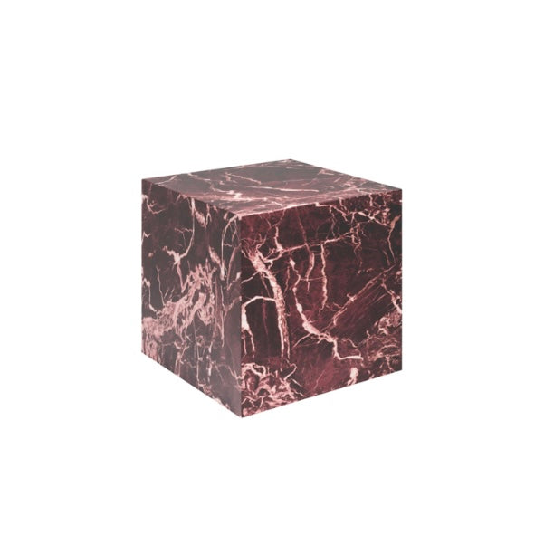 Elevate your space with the Sur Rosso Levanto Side Table, a bold accent table featuring a rich red marble-effect finish inspired by luxurious Rosso Levanto stone. The deep burgundy tones and natural-style veining create a statement look, while the clean, cube silhouette keeps the design modern and architectural.