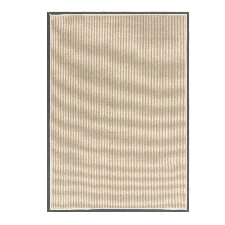 The Korra Loop Rug is power-loomed from a durable blend of wool and jute, finished with a contrasting slate border for subtle definition. Its low loop pile and neutral tones make it a versatile choice for living spaces, bedrooms and hallways, offering texture without overpowering the room.