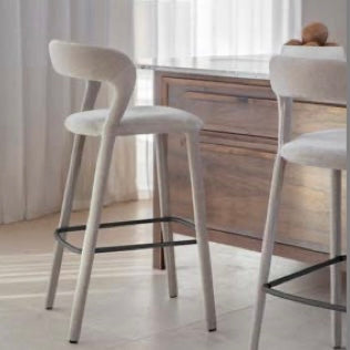 The Cruise Bar Stool in Taupe brings sculptural form and tactile comfort to elevated dining settings. Wrapped in a soft, brushed velvet fabric, the stool’s curved back and gently rounded seat are designed to support without imposing. The taupe upholstery leans towards a warm stone, offering a neutral base that complements both modern and traditional palettes. Slim legs and a practical black metal footrest add contrast and definition to the silhouette.
