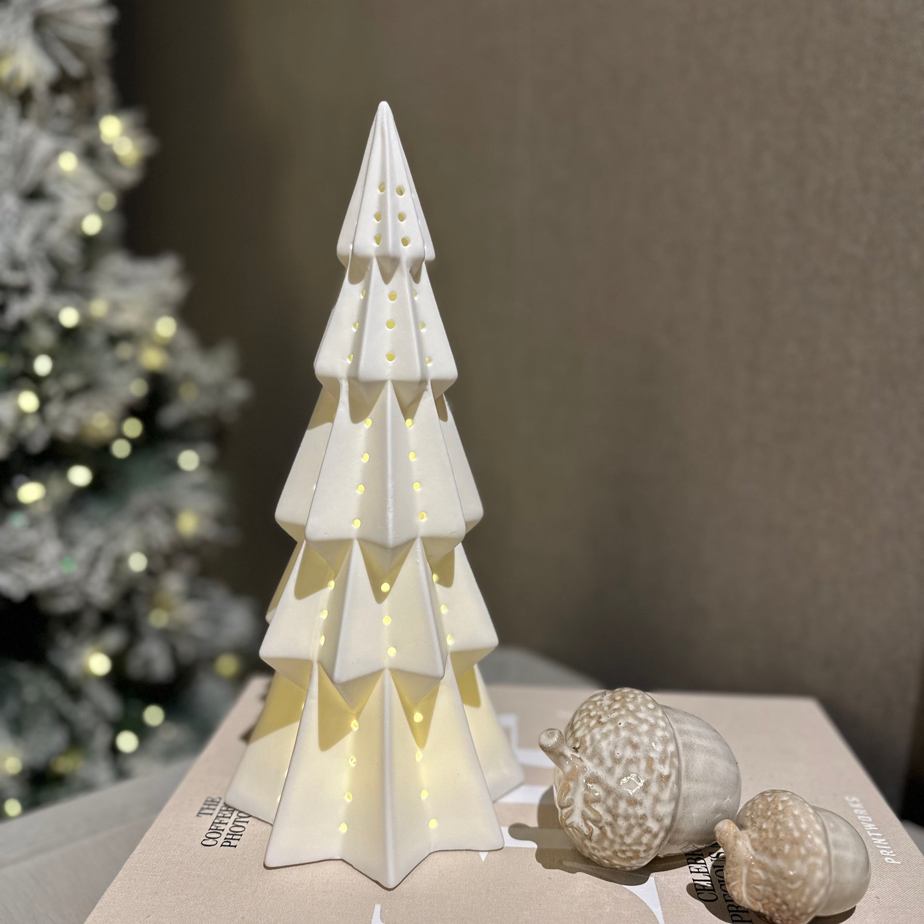 Bring a soft festive glow to your home with the White Lit Tiered Christmas Tree. Featuring a layered silhouette and gentle built-in lighting, this sculptural piece offers a modern interpretation of seasonal décor.