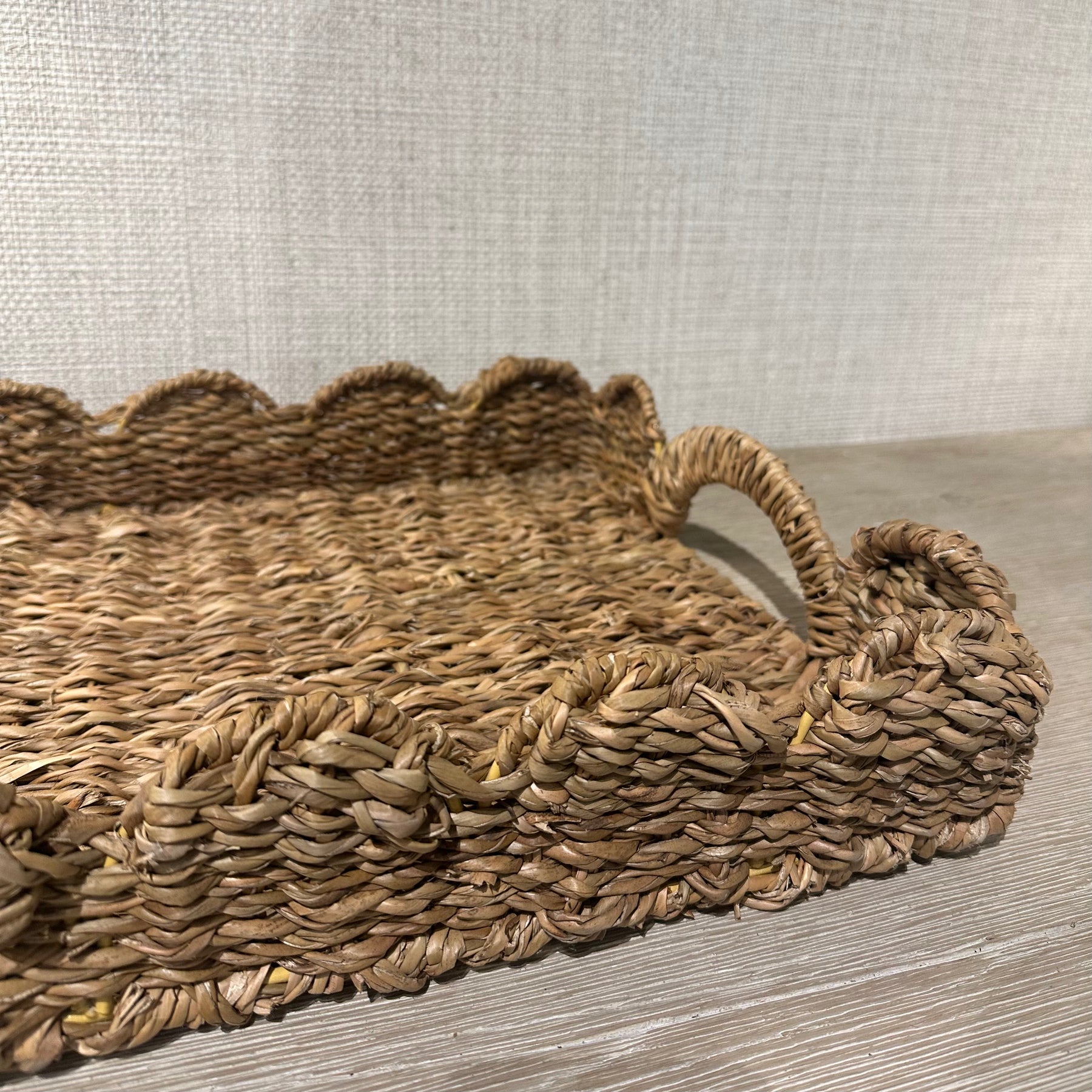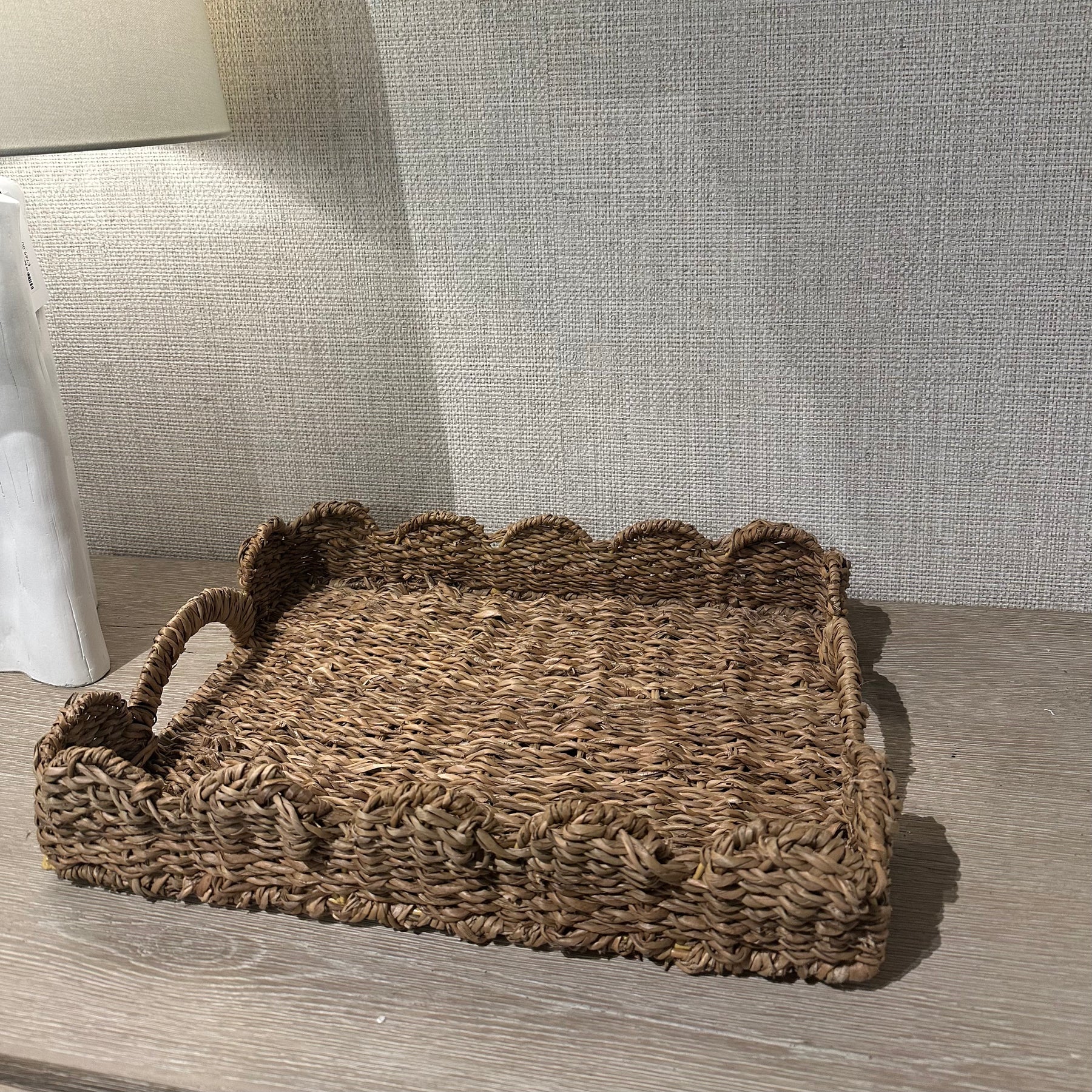 Bring a touch of natural elegance to your home with our Scallop Seagrass Tray. Handwoven from sustainable seagrass, this tray features a charming scalloped edge that adds texture and interest to any surface. Its generous rectangular shape is perfect for serving drinks, styling a coffee table, or corralling everyday essentials in a stylish way. Durable yet lightweight, this versatile tray complements both modern and coastal-inspired interiors.