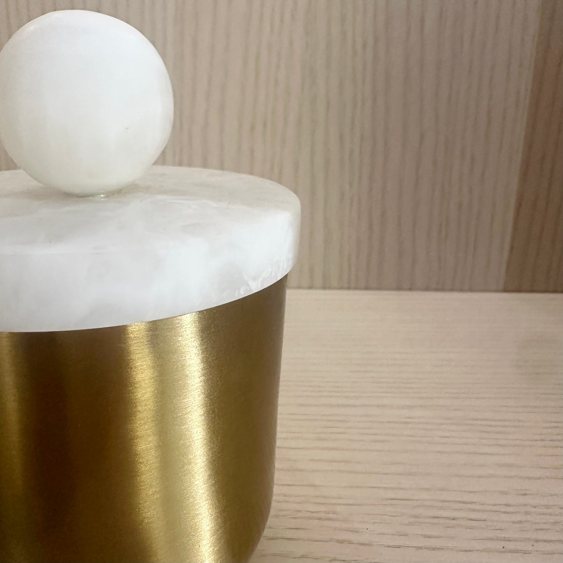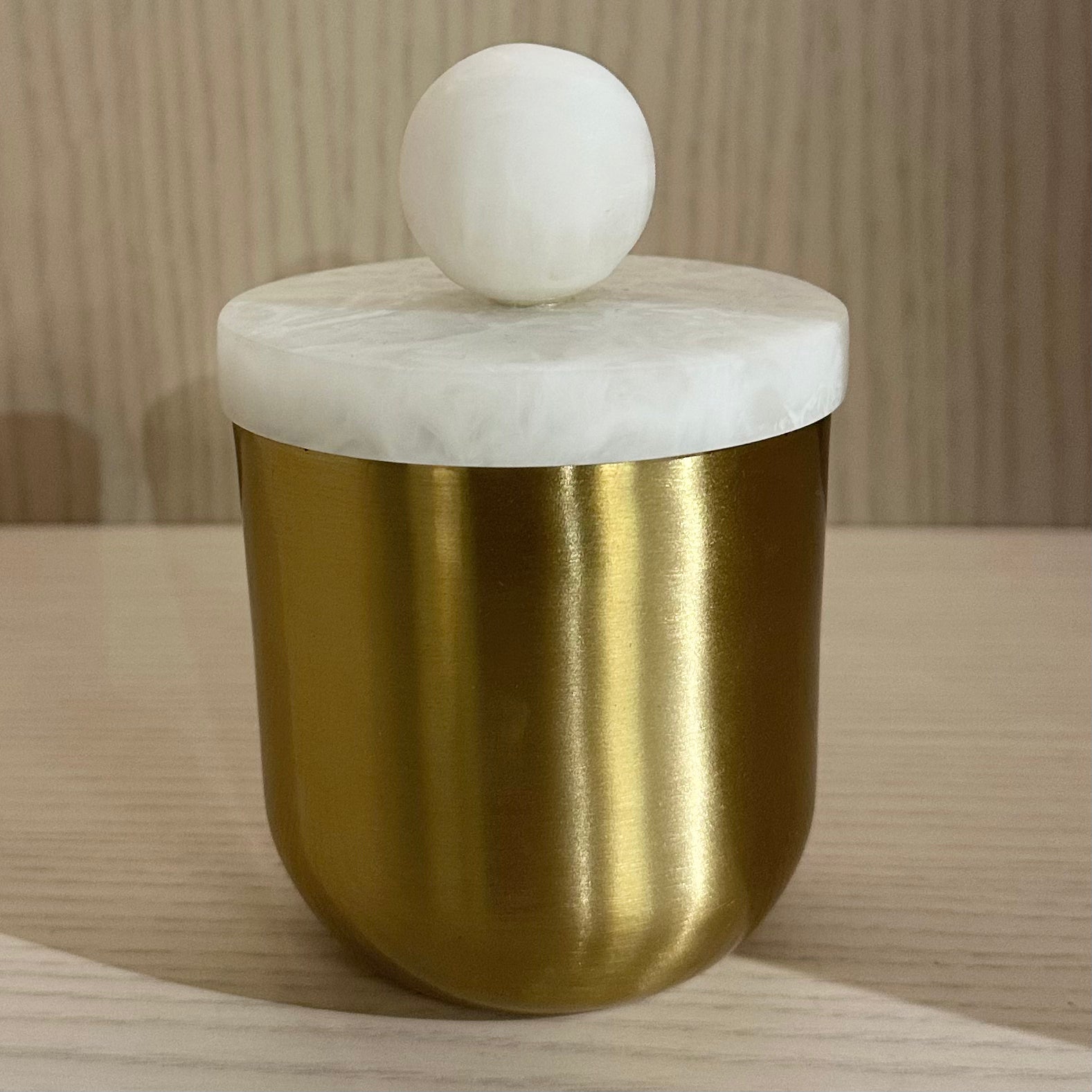 Elevate everyday styling with the Gold Lidded Canister, a refined accent that blends modern minimalism with subtle glamour. Crafted in brushed gold with a smooth marble-style lid and spherical handle, this piece brings understated elegance to shelves, consoles, or dressing tables.