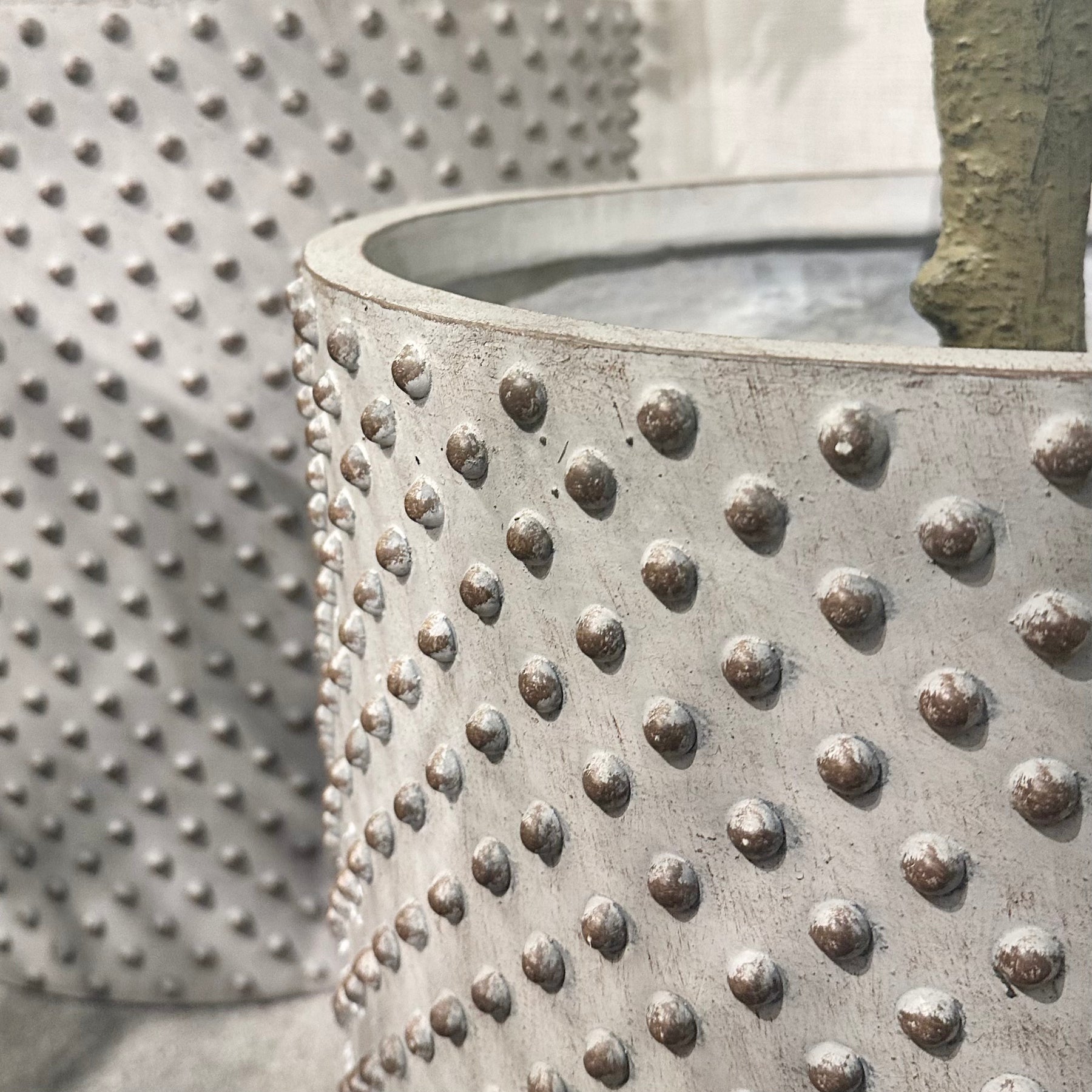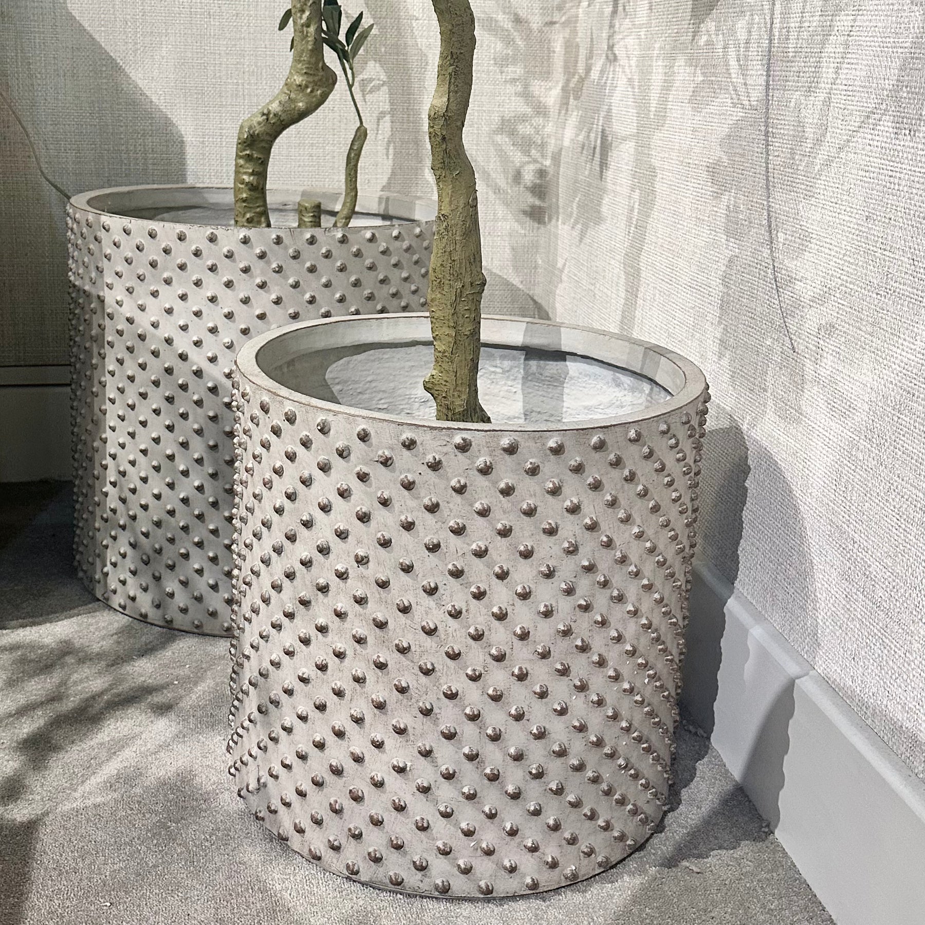 A striking pair of textured planters featuring a raised bobble design in a soft neutral finish. Sculptural yet understated, they add depth and interest to both indoor and outdoor spaces.