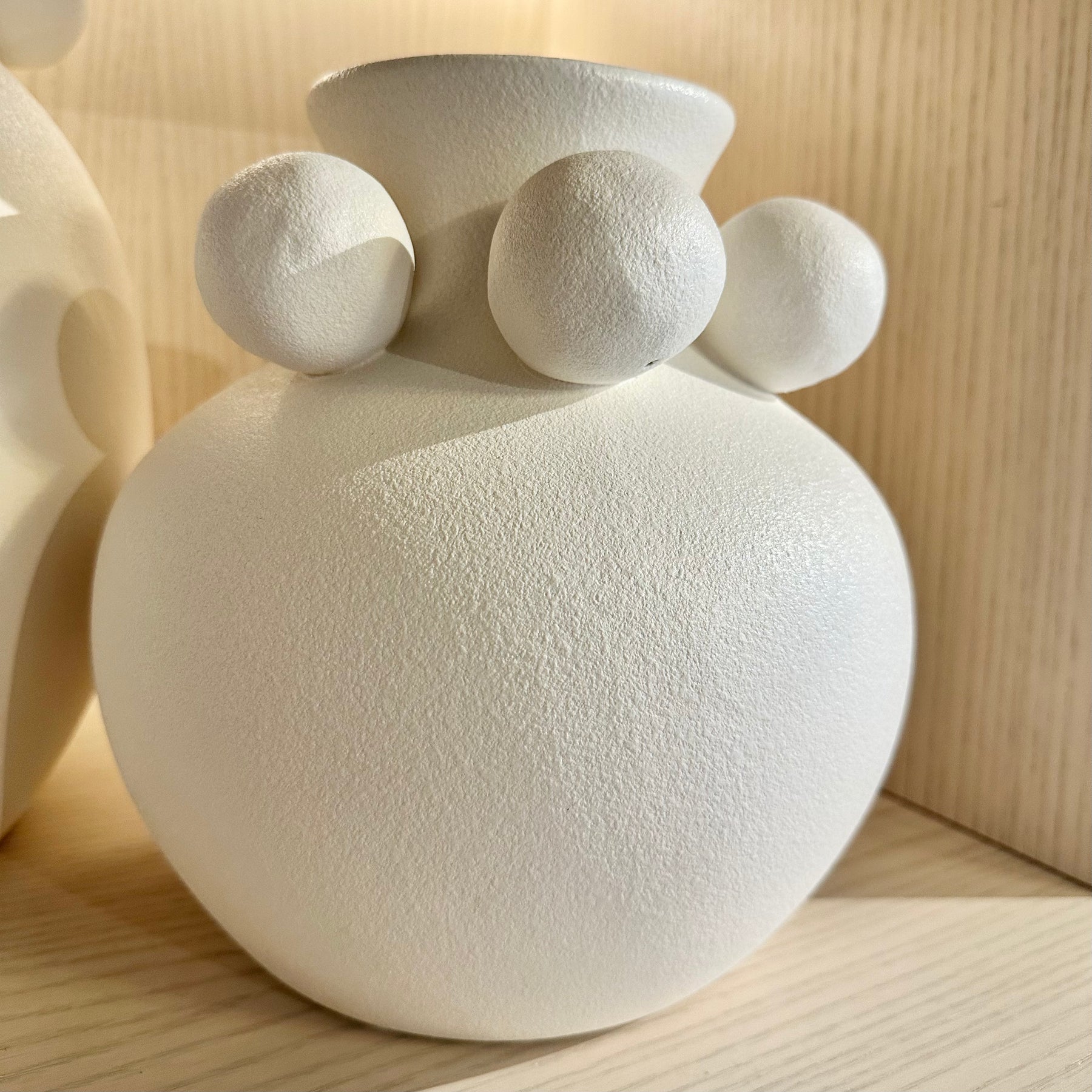 A playful yet sculptural matte white vase featuring raised bobble detailing for a modern, textural look. Its rounded silhouette and tactile finish make it a charming styling piece for shelves, coffee tables and bedside décor. Perfect for single stems, dried flowers or as a standalone decorative accent, it brings a soft, contemporary feel to minimalist, neutral and Scandi-inspired interiors.