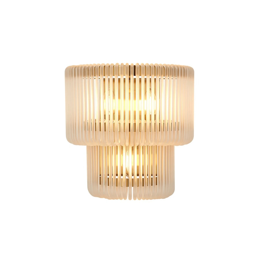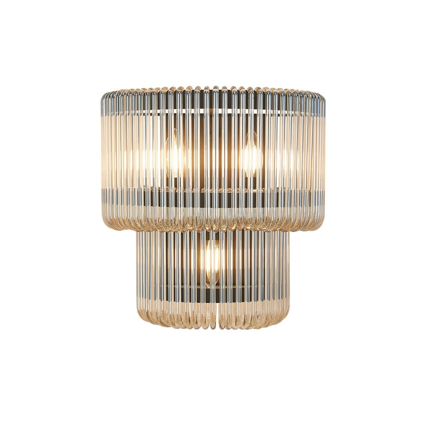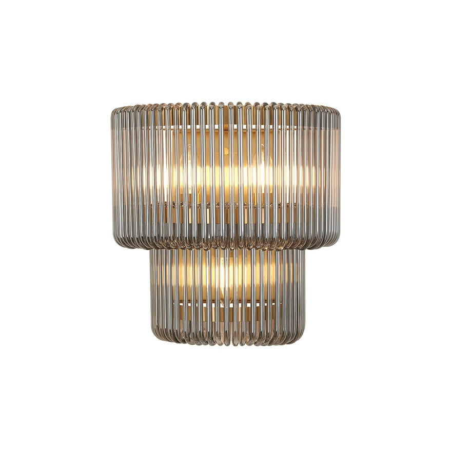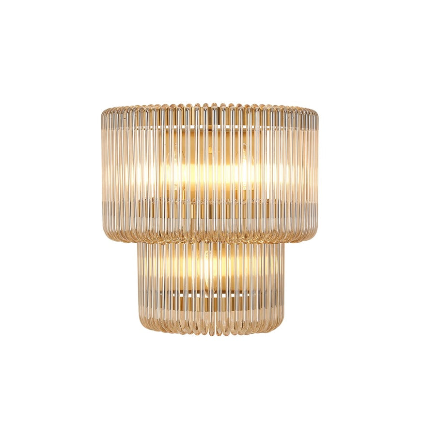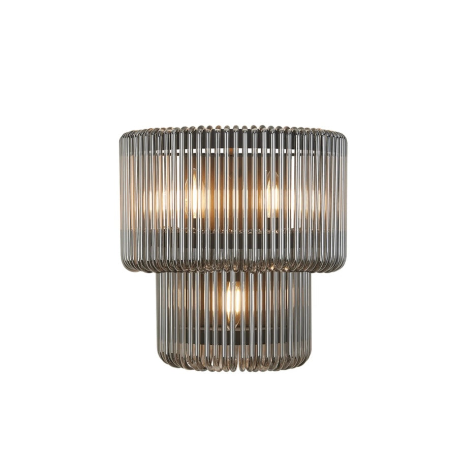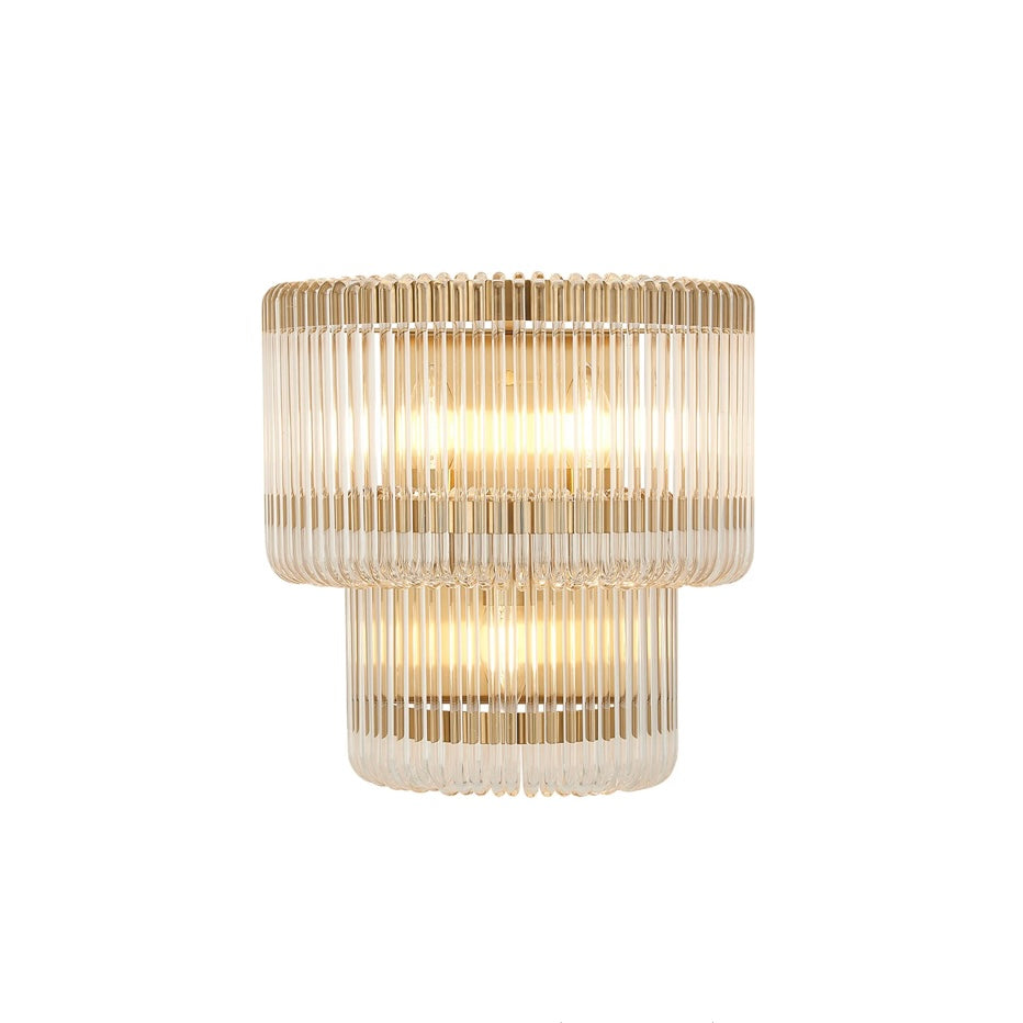 A refined blend of structure and glow, the Julia Large Wall Light pairs a sleek metal frame with vertically ribbed, two tired glass that softly diffuses light. The fluted texture adds depth and a subtle Art Deco note, while the compact scale makes it perfect for hallways, bedside lighting, or layered living room schemes.