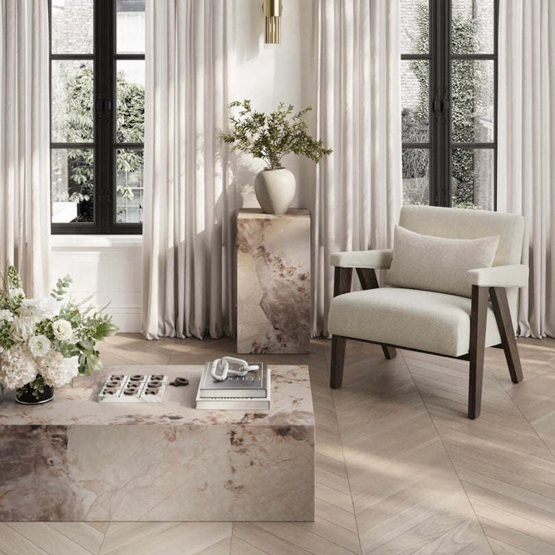 Elegant and sculptural, the Pandora Small Pedestal is designed to bring natural warmth and sophistication to any interior. Crafted from solid marble with softly honed surfaces, its organic veining and tonal variations make each piece one of a kind.