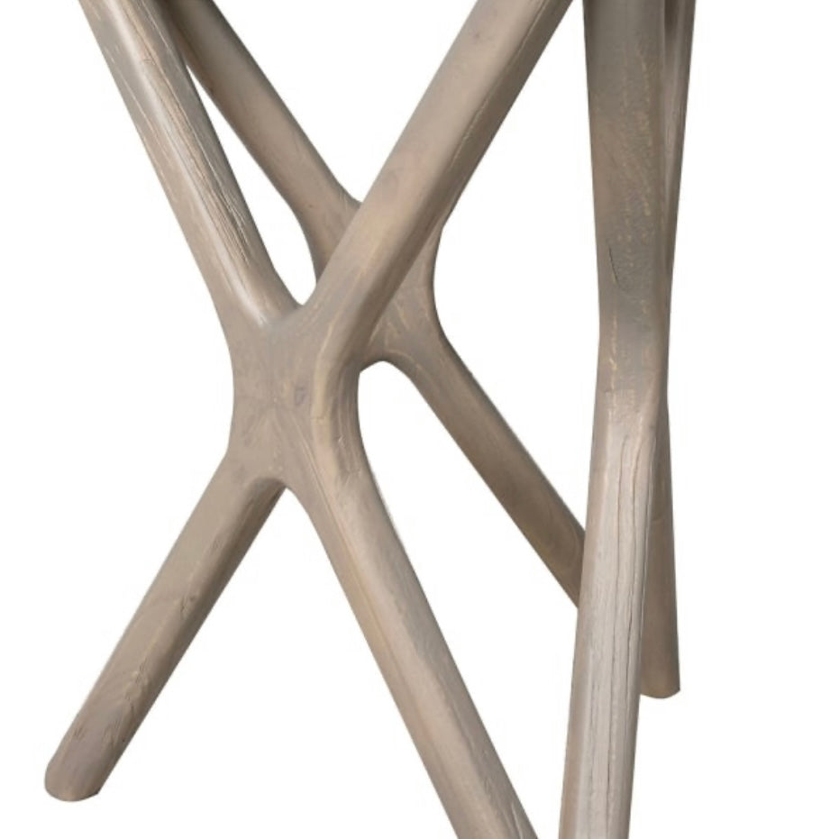 The criss-cross base adds architectural interest while maintaining a light, airy feel — making it the perfect accent beside a sofa, armchair, or in a hallway.