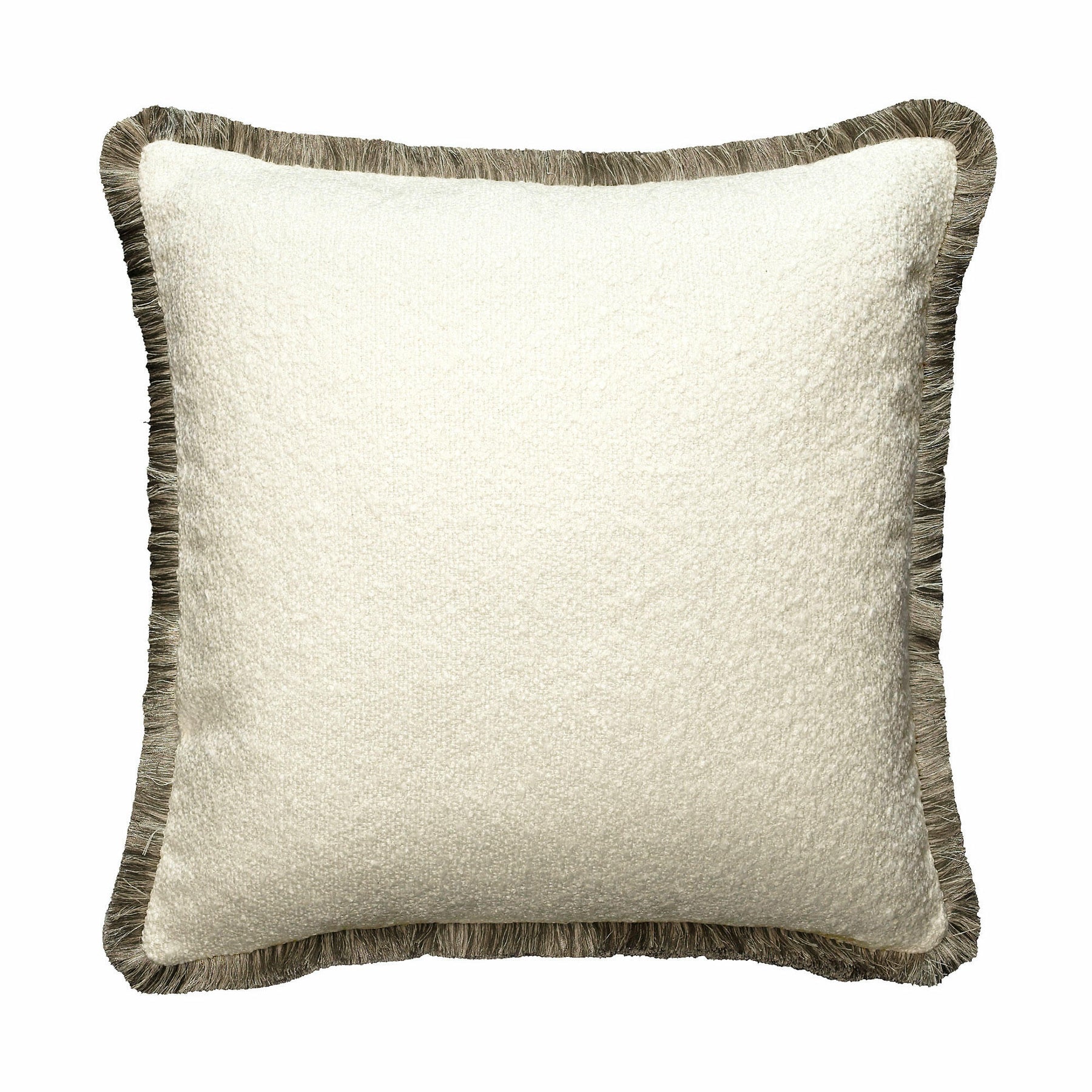 Designed in collaboration with Sophie Paterson, this elegant cushion is constructed from our soft boucle style Huntsman fabric in off-white Ivory. The tactile nature of the fabric is brought to life by our Alezio Gold trim, with fine threads of gold adding a luxurious metallic touch.